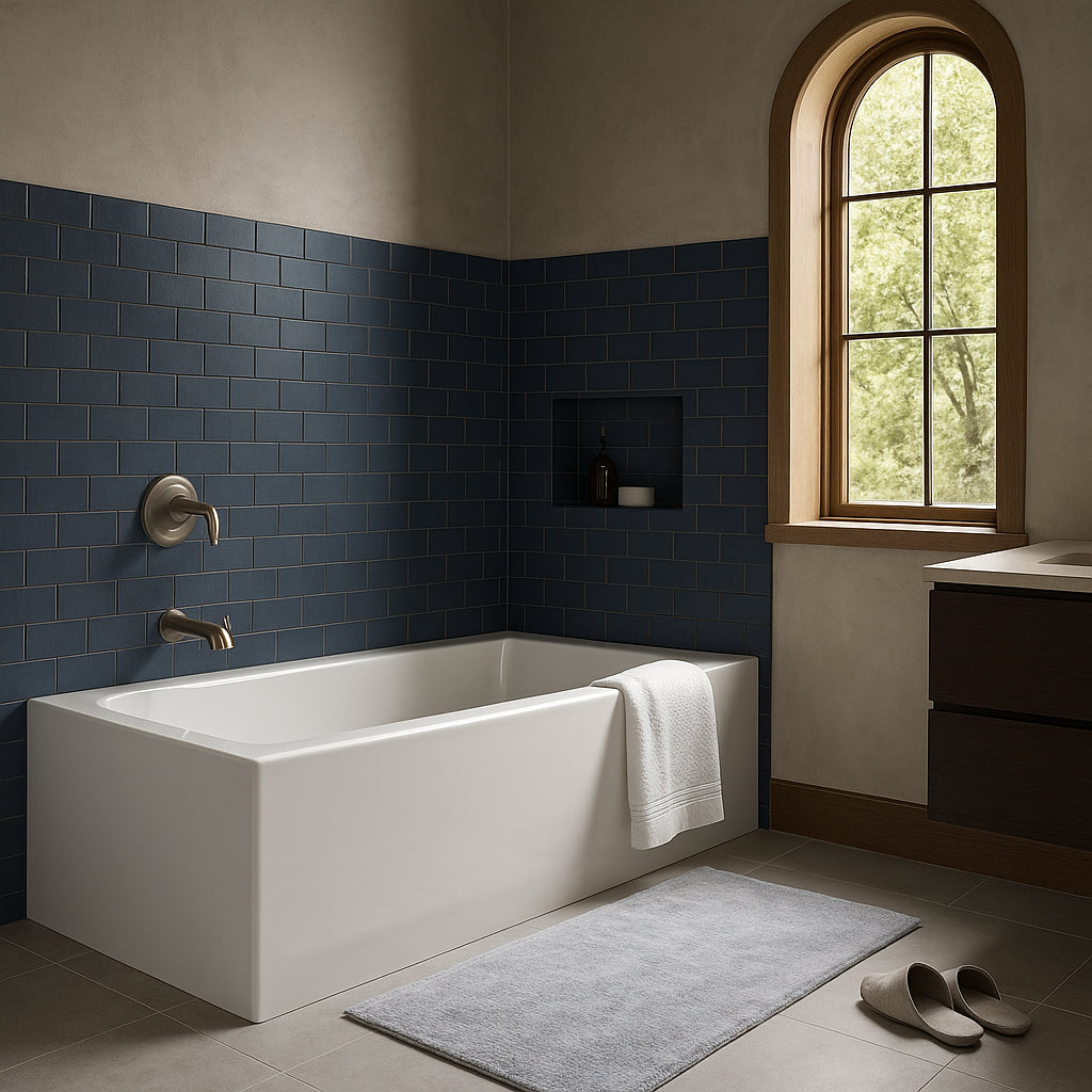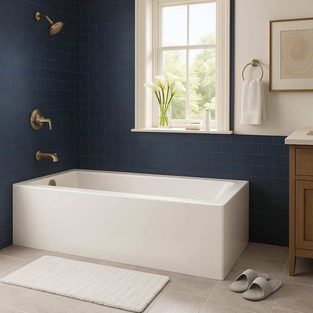 The KOHLER Elmbrook bathtub is a masterpiece of modern design, seamlessly blending functionality with aesthetic appeal. Its sleek lines and integral apron create a polished look that complements both traditional and contemporary spaces. Imagine pairing this bathtub with soft, neutral tiles to create a serene retreat or bold, dark accents for a dramatic effect. With its slip-resistant surface and ergonomic backrest, this bathtub is not just a fixture but a statement of luxurious living.