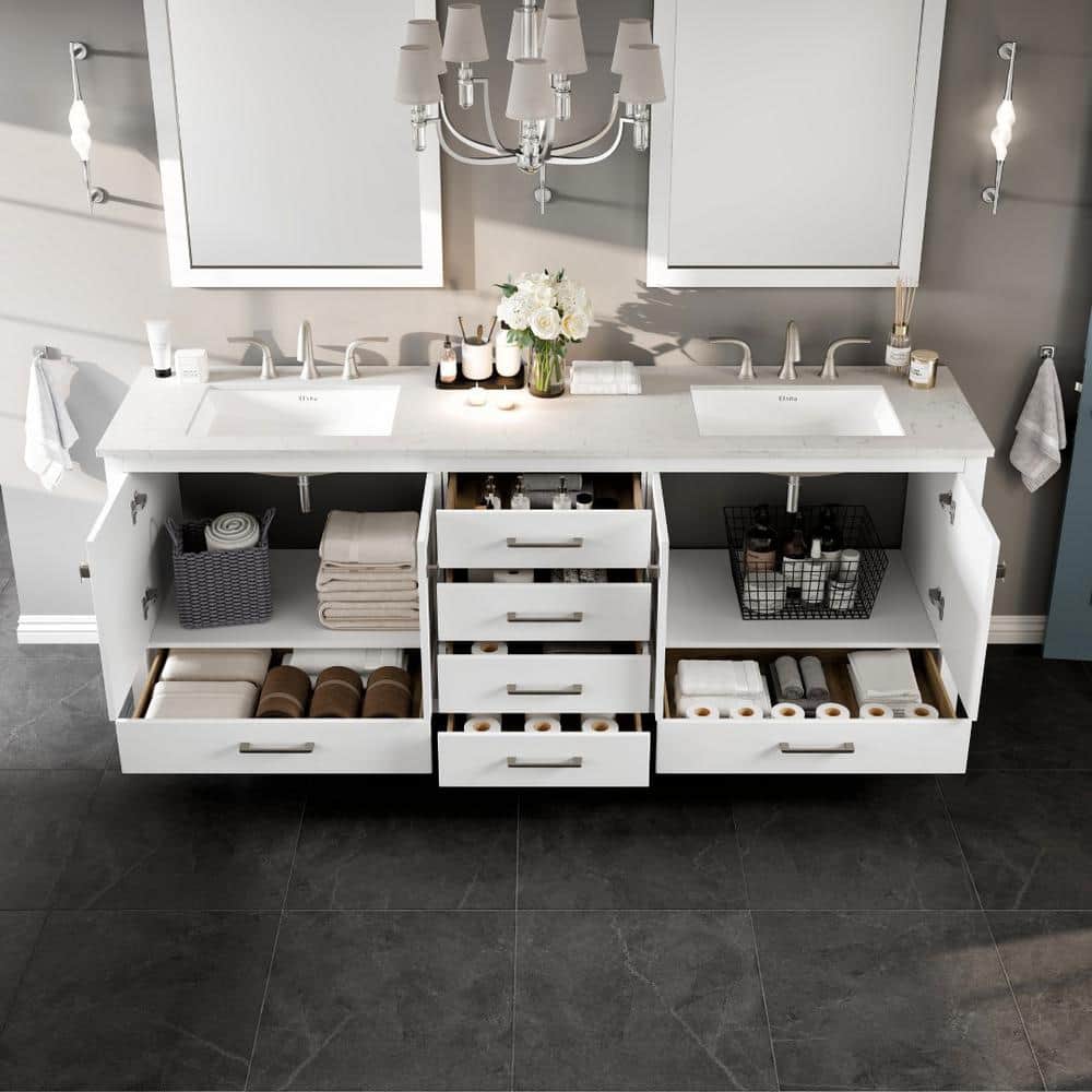 Eviva Aberdeen 84 in. W x 22 in. D x 34 in. H Double Bath Vanity in White with White Carrara Quartz Top with White Sink