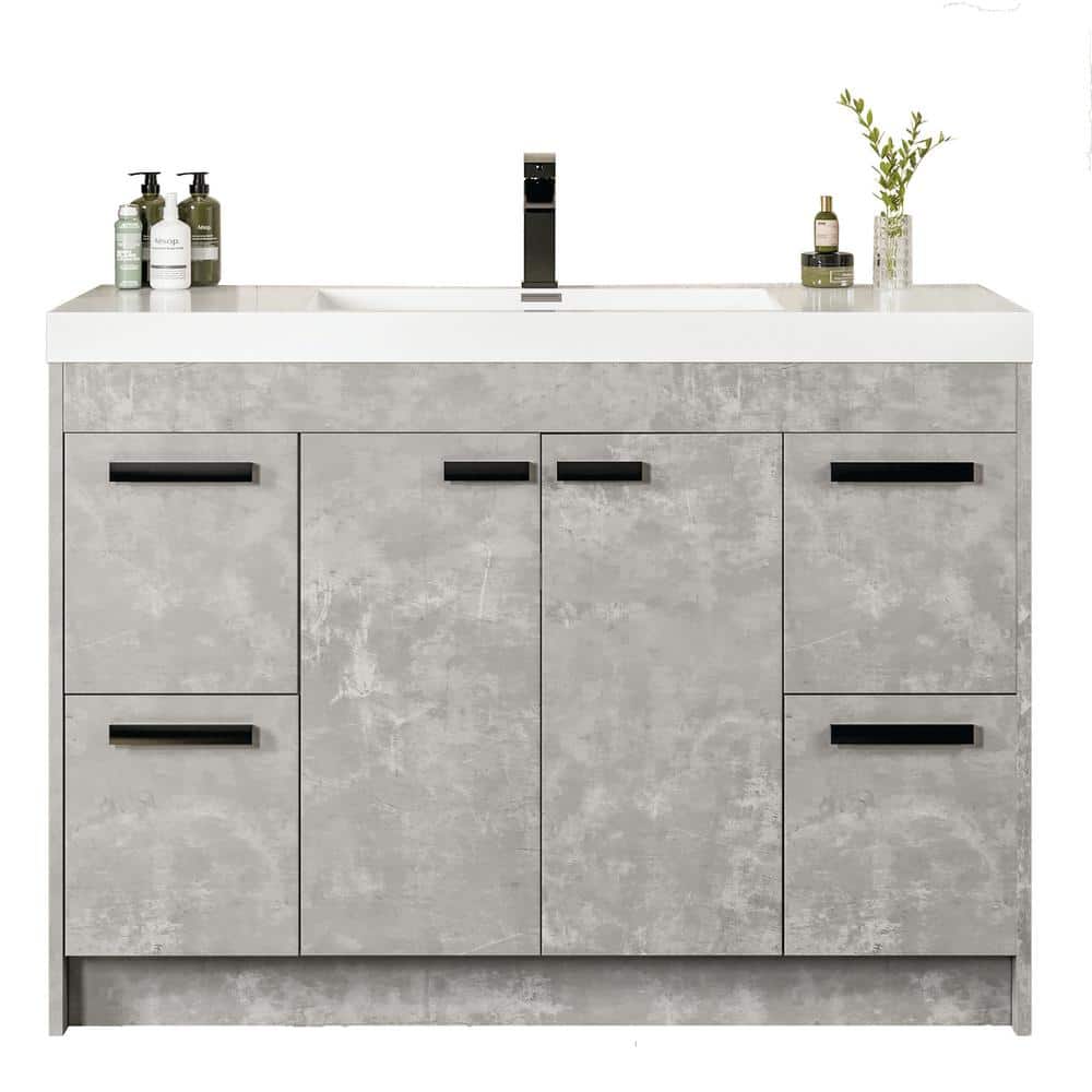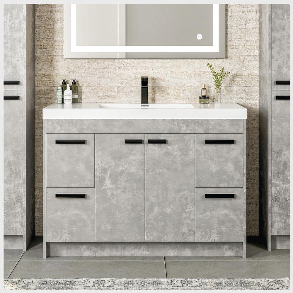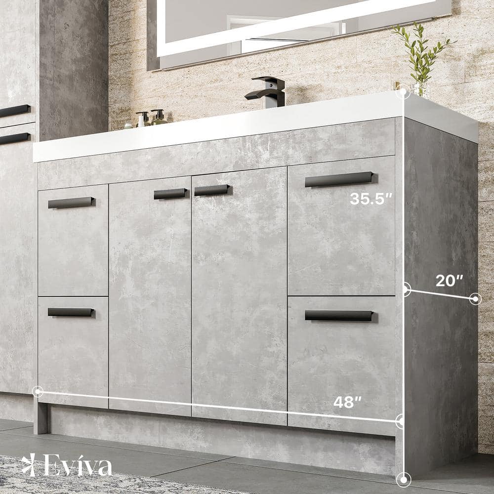 Upgrade your bathroom decor with the Eviva Lugano 42" Cement Gray Vanity. Featuring a modern, textured finish and an integrated acrylic sink, this vanity combines style with functionality. With a spacious design, it offers ample storage through its soft-closing doors and drawers, suiting both professional and DIY installations.