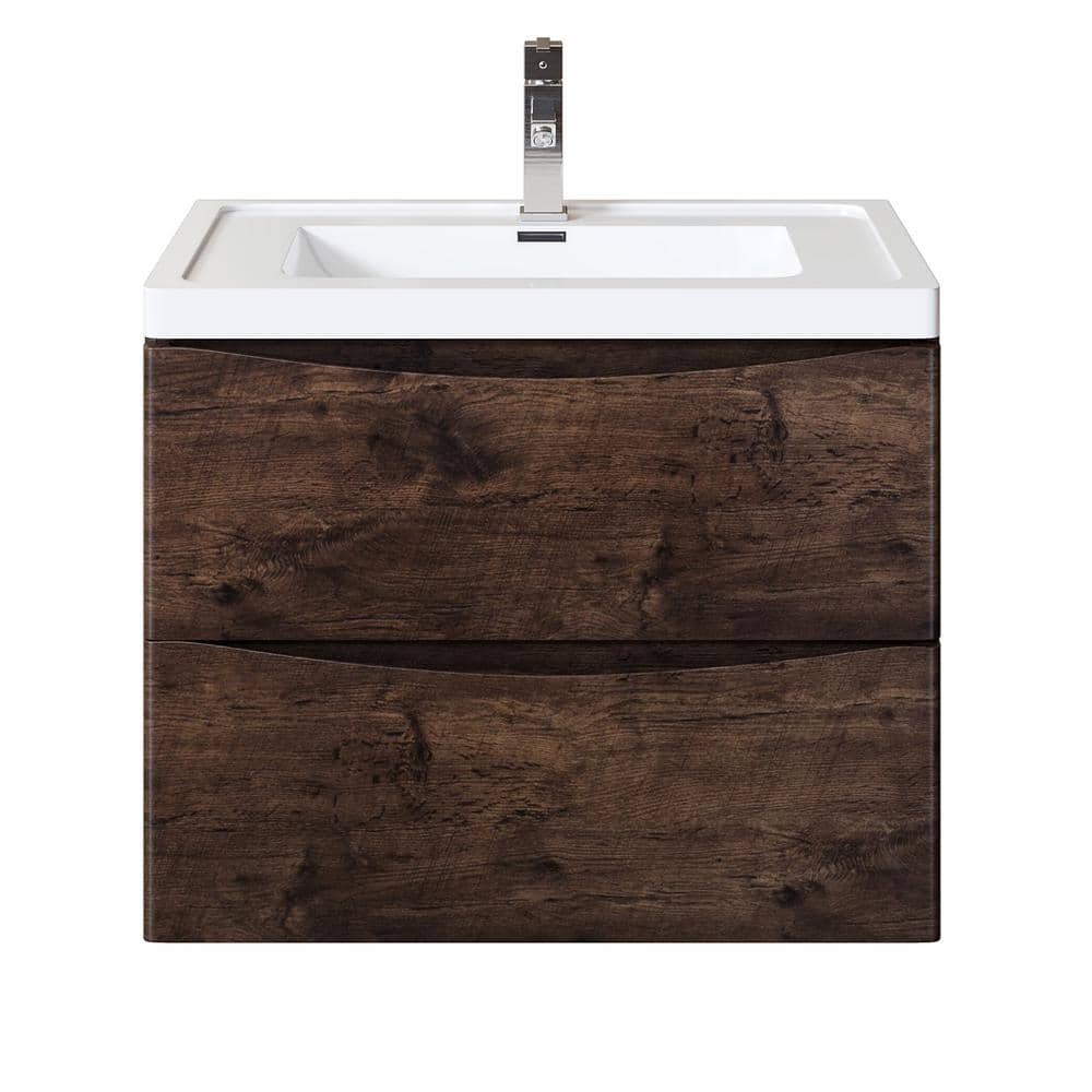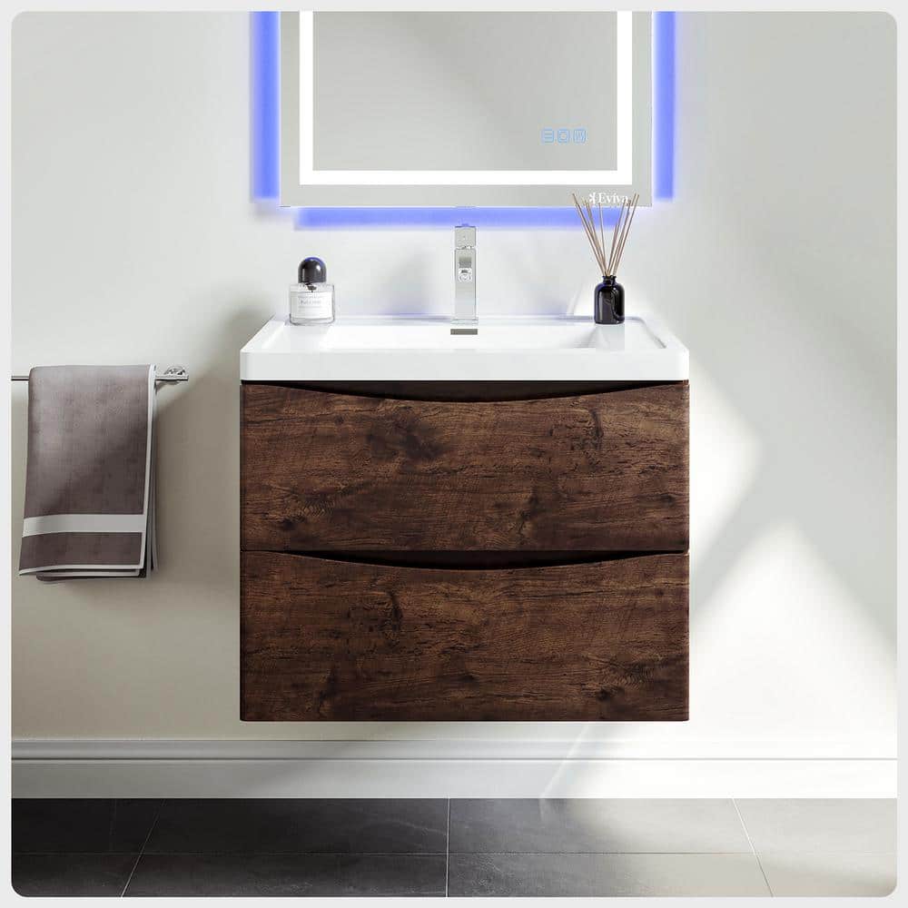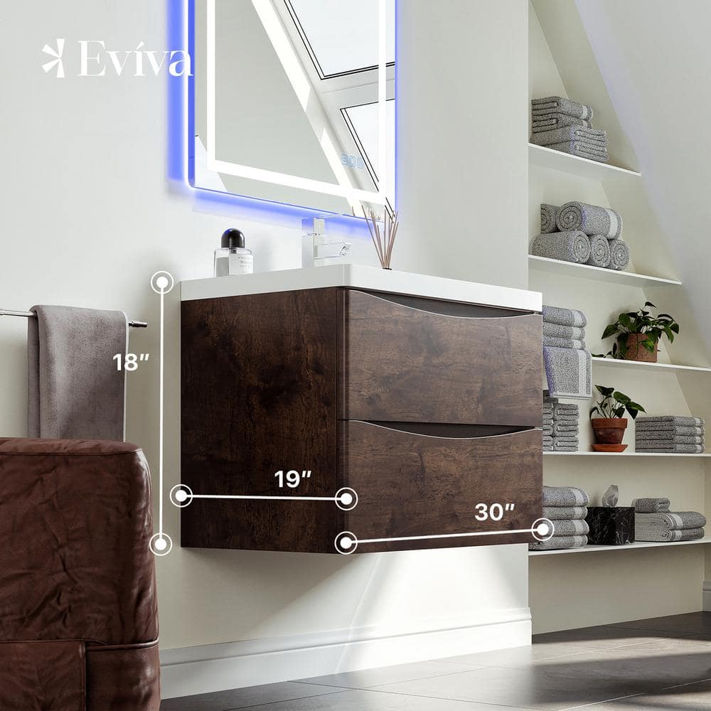 Eviva Smile 30 in. W x 19 in. D x 18 in. H Single Bath Vanity Floating in Rosewood with White Acrylic Top with White Sink