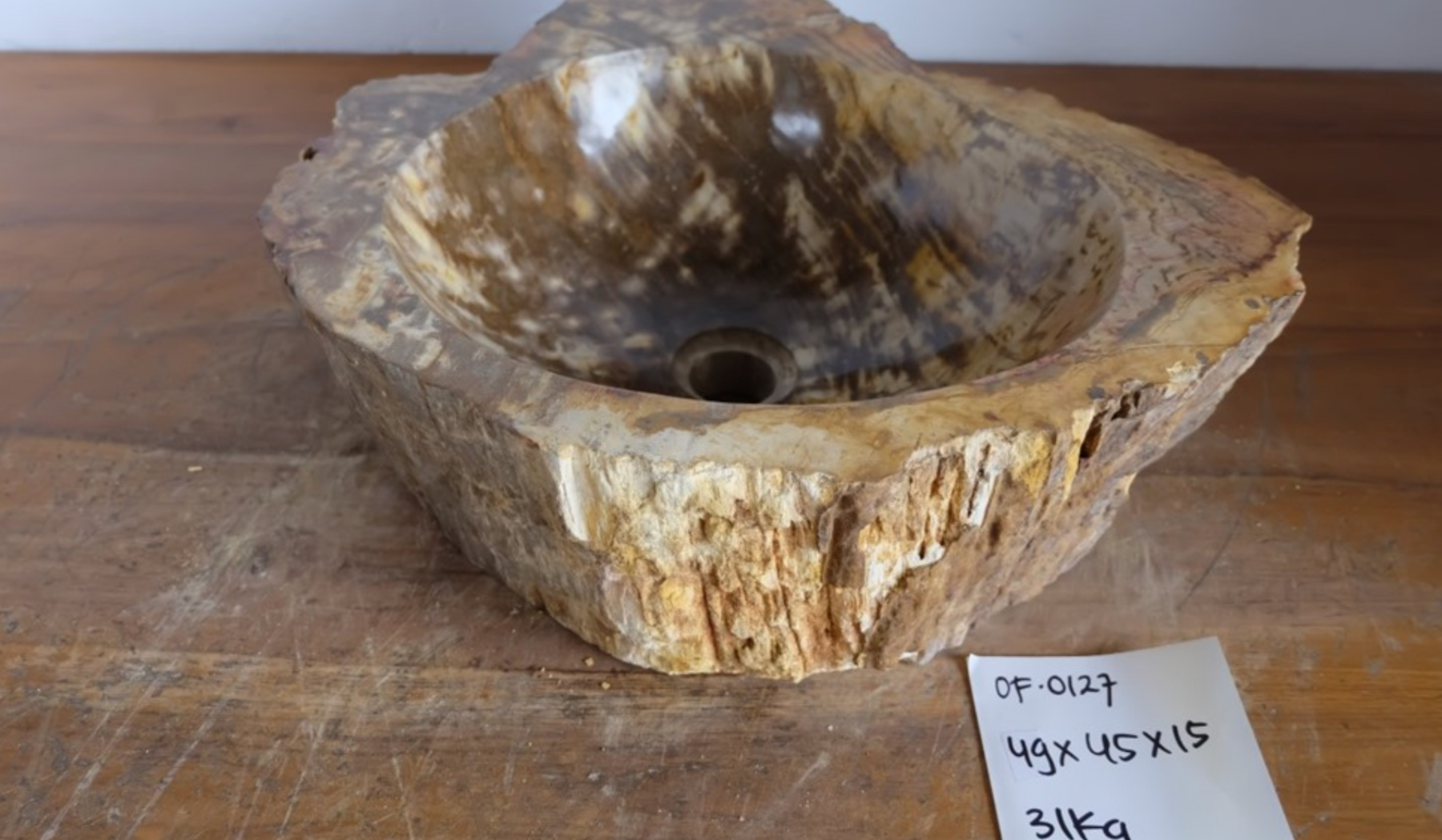 (Please choose your sink) Eden Bath Natural Stone Mid-Sized Vessel Sink in Petrified Wood