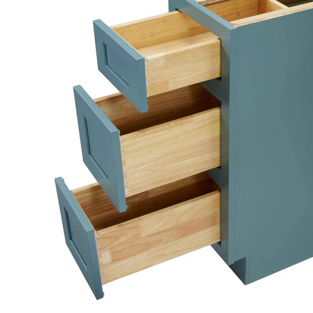 Transform your bathroom space with the Vanity Art 3-Drawer Bath Vanity Cabinet, elegantly crafted in vibrant sea green. This cabinet is constructed from durable oak and plywood, featuring an elegant shaker-style design that adds a sophisticated touch to any bathroom decor.