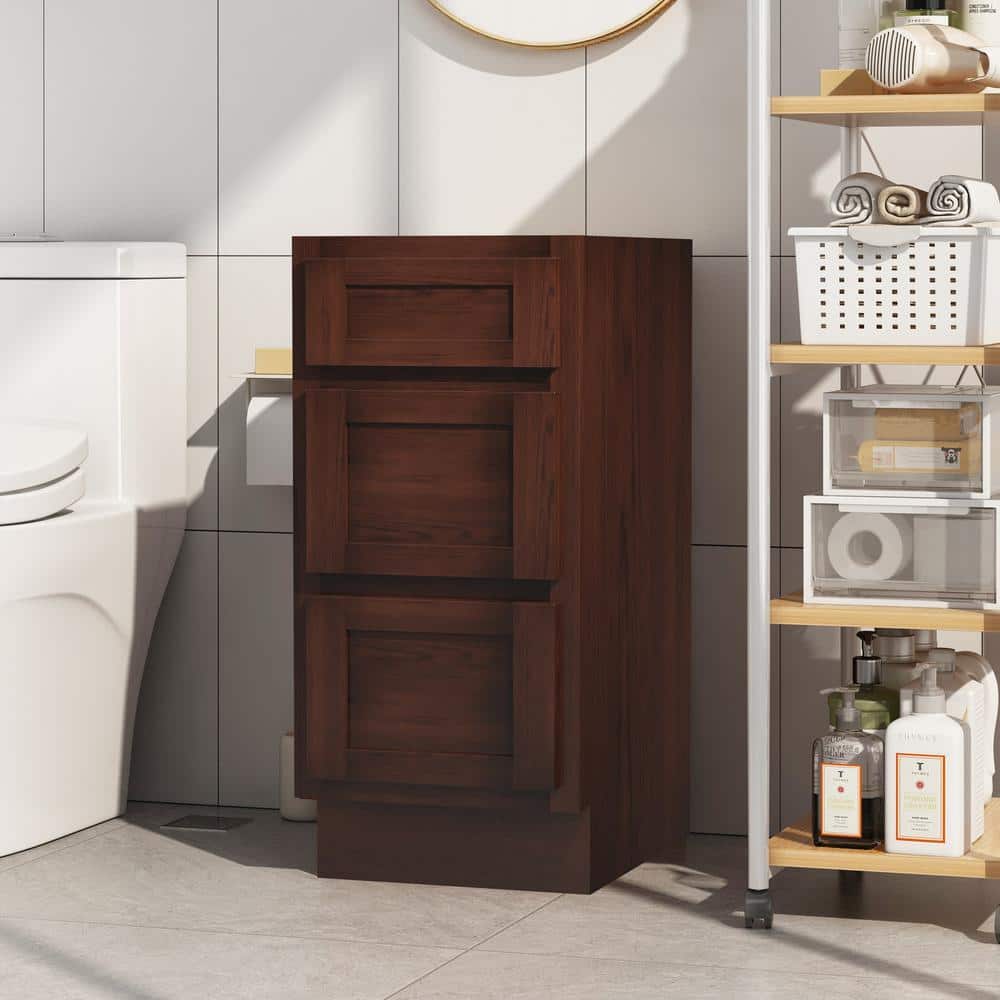 Vanity Art 15 in. W x 21 in. D x 32.5 in. H 3-Drawers Bath Vanity Cabinet Only in Brown