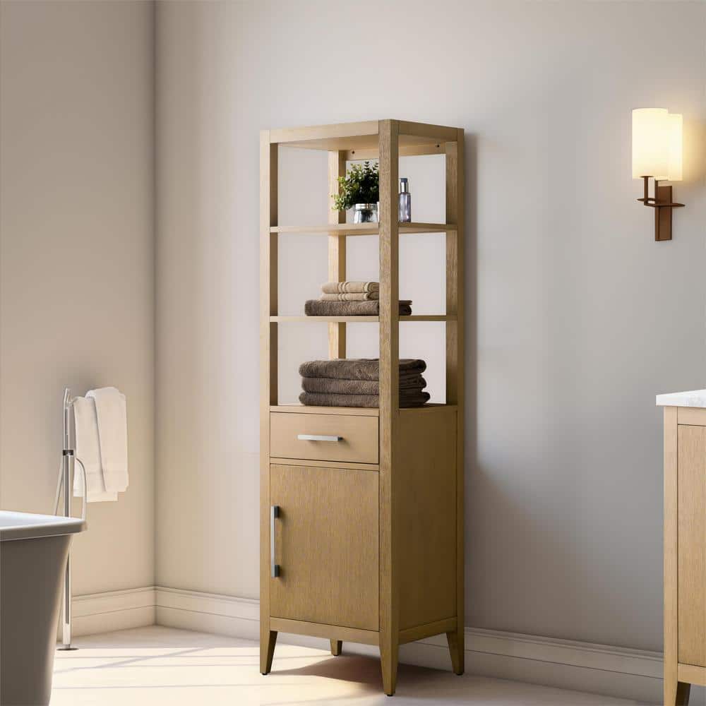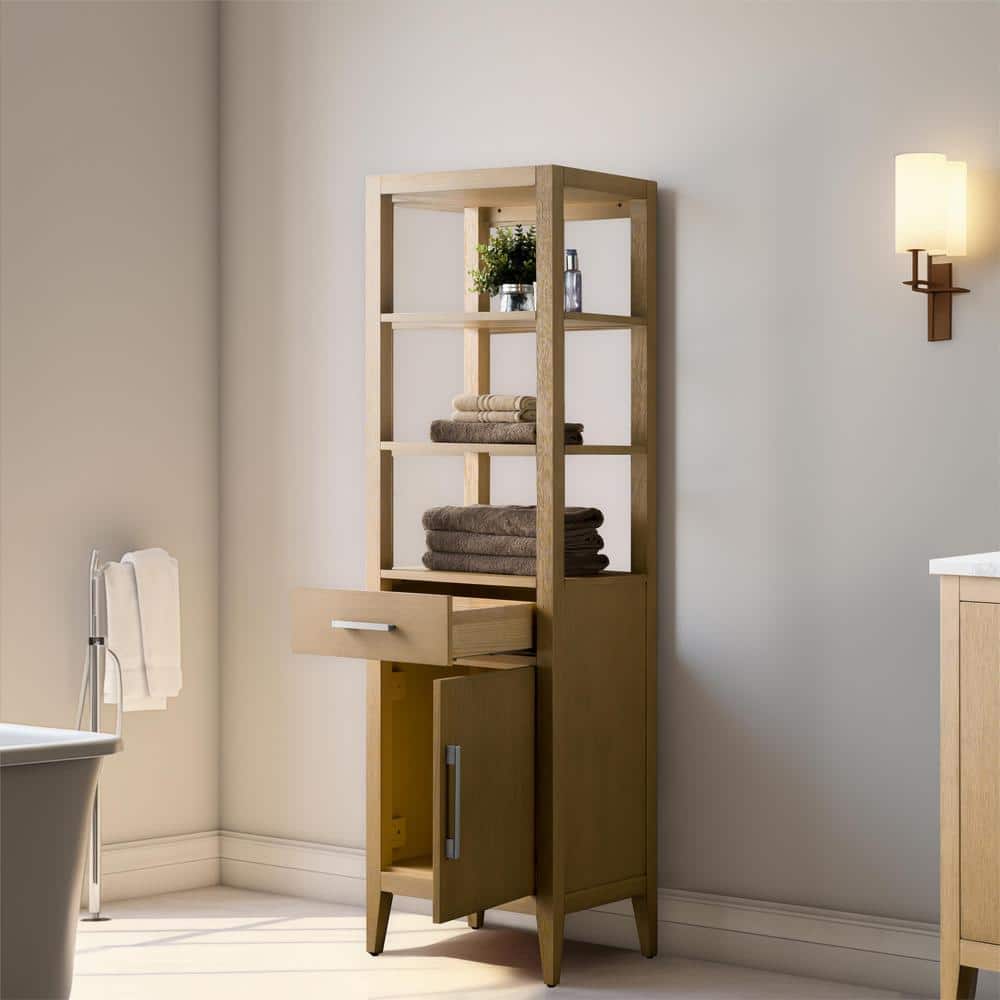 Upgrade your space with the Vanity Art Natural Oak Linen Cabinet. With its elegant poplar wood construction and soft-close doors, this freestanding cabinet offers both style and functionality, seamlessly organizing your bathroom essentials with modern grace.