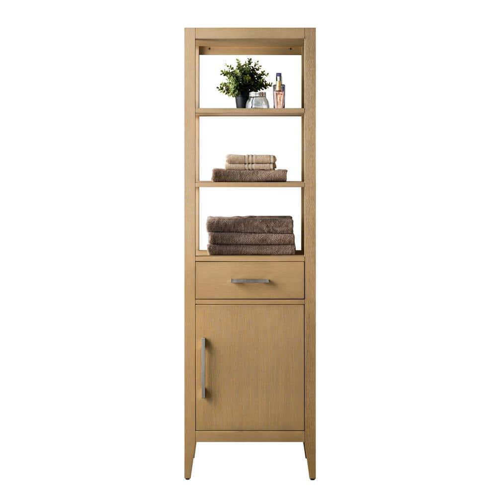 Vanity Art 21 in. W x 17 in. D x 72 in. H Brown MDF Floor Standing Linen Cabinet with Soft Close Door in Natural Oak/BN