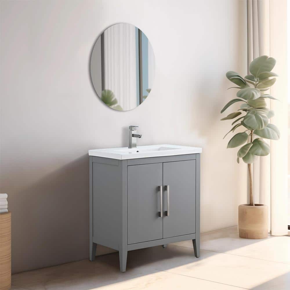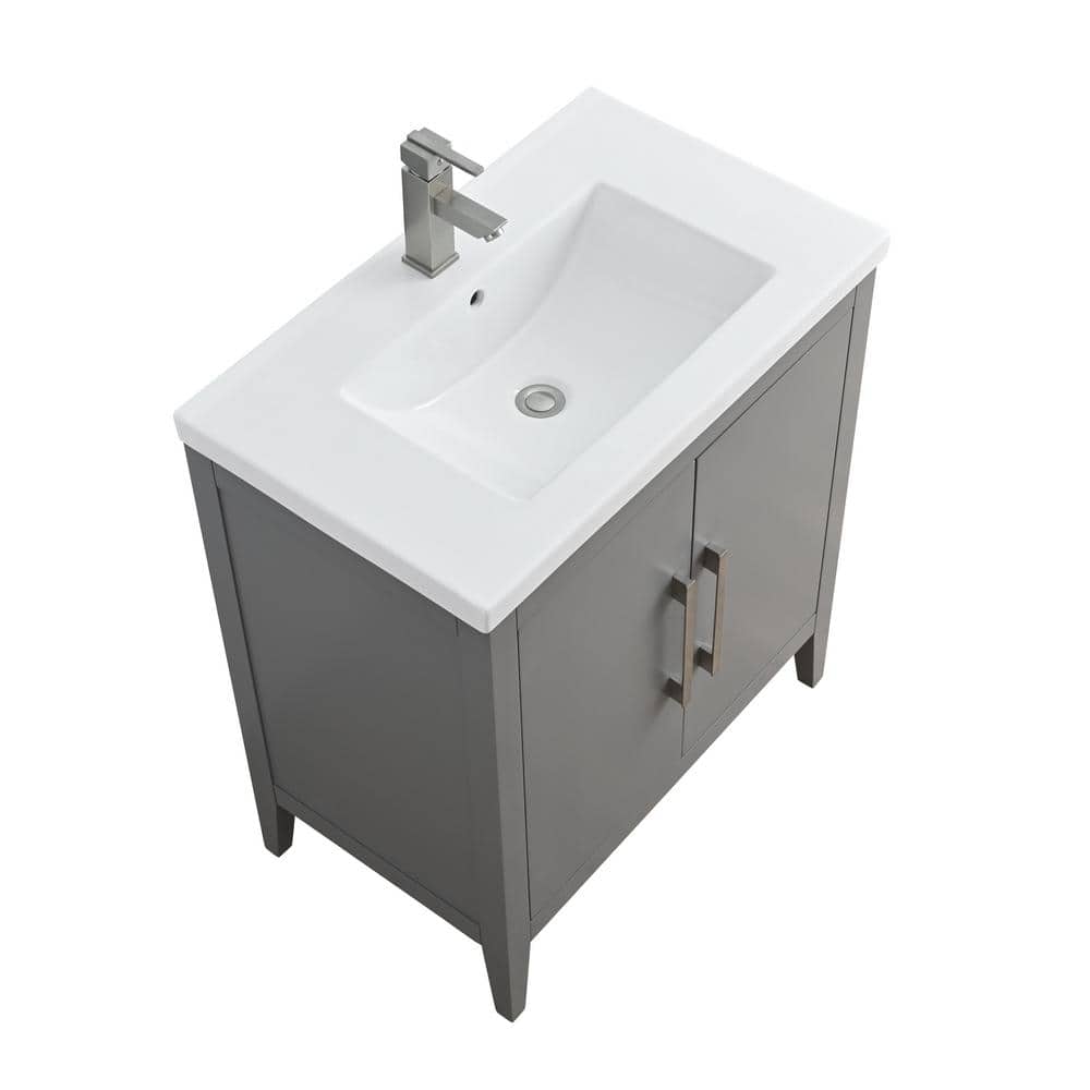 30-Inch Cashmere Gray Bathroom Vanity with Ceramic Top