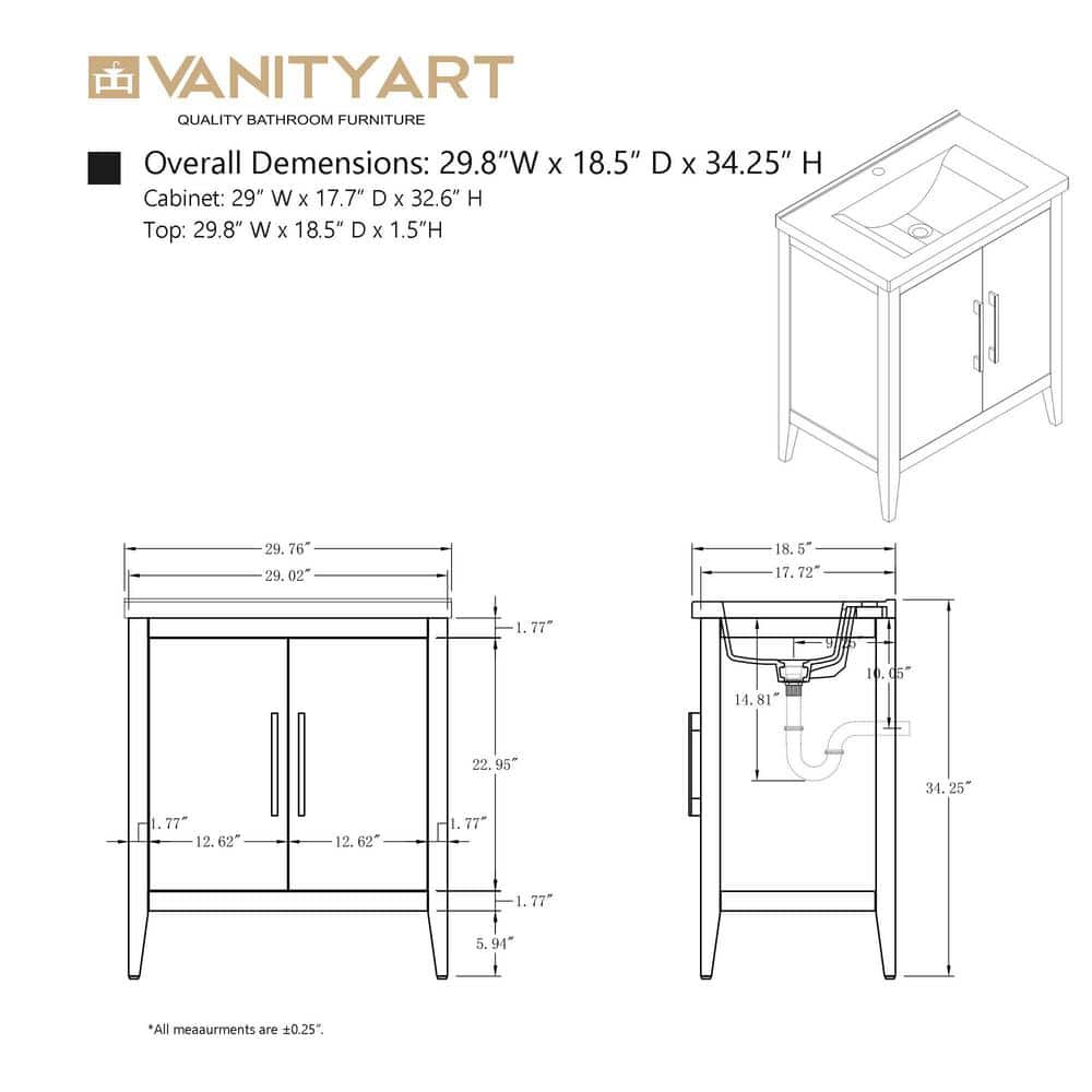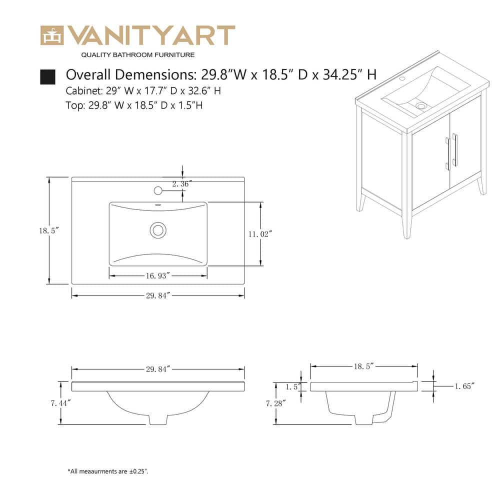 Enhance your bathroom today with the perfect blend of elegance and practicality—explore the Vanity Art 30-Inch Bathroom Vanity now!