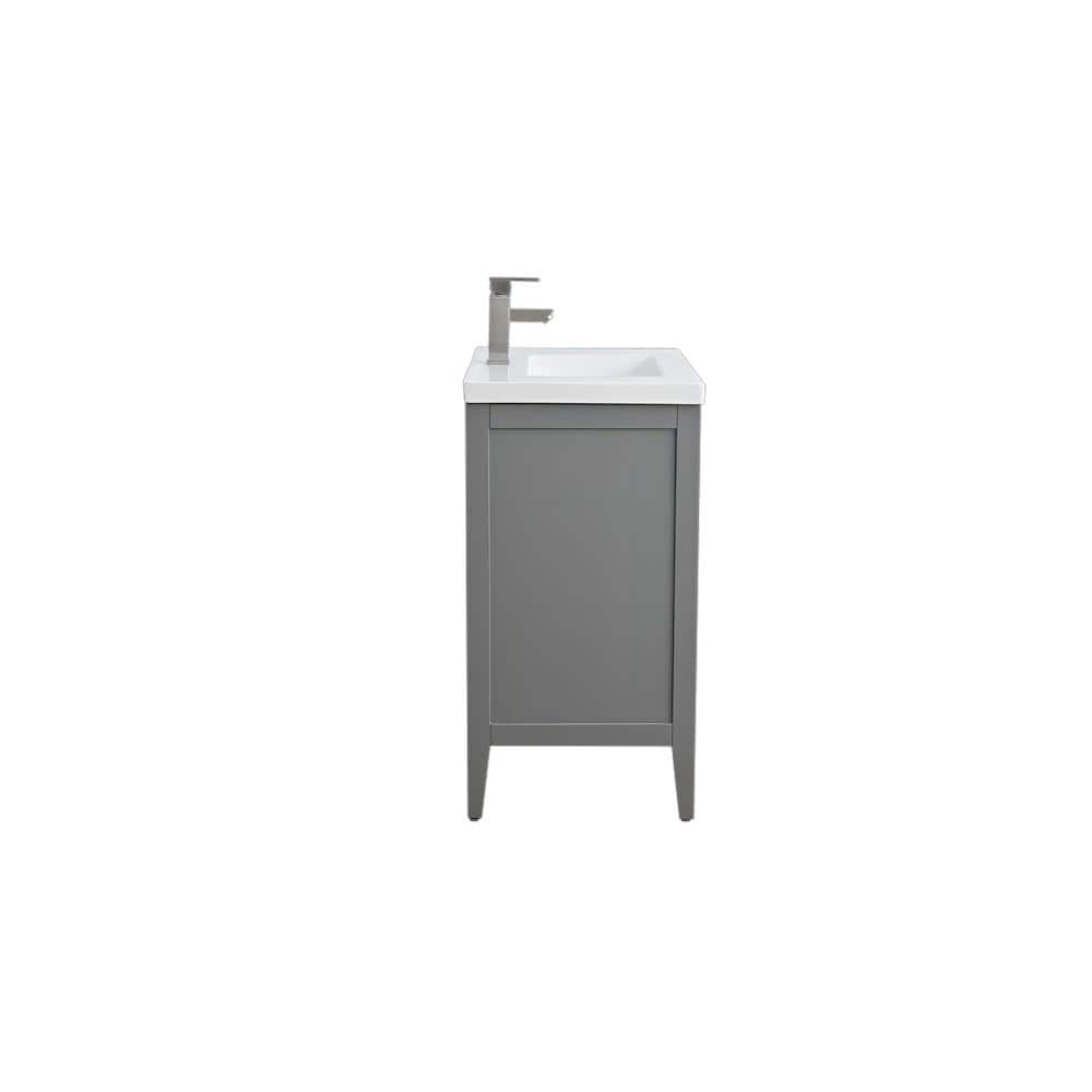 Infuse your bathroom with an air of sophisticated luxury using the Vanity Art 30-Inch Bathroom Vanity in Cashmere Gray. Its sleek ceramic countertop serves as a flawless surface, effortlessly capturing and reflecting ambient light to brighten any space. The soft-close doors and brushed nickel hardware add a touch of modern grace, transforming functionality into art. Style it with plush towels in muted tones to accentuate its timeless charm. Make this vanity the heart of a personal sanctuary, where style meets serene convenience in a seamless blend.