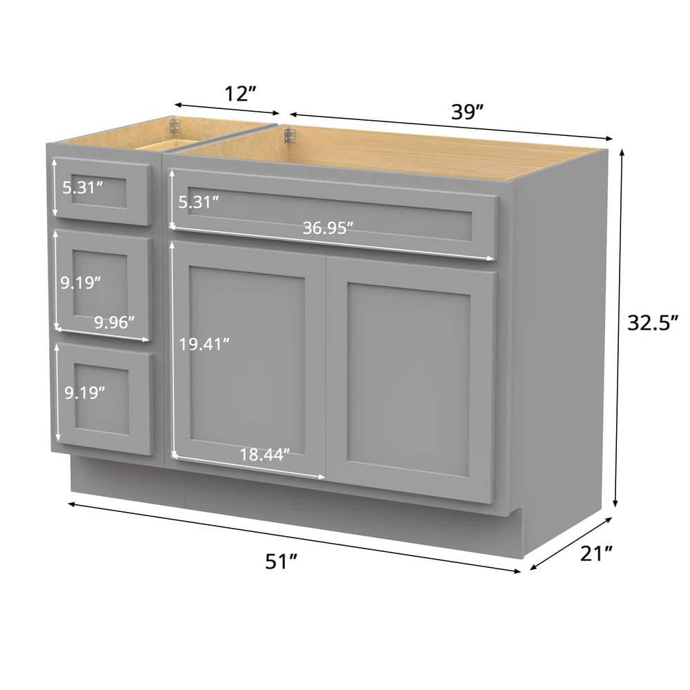 Vanity Art 51 in. W. x 21 in. D x 32.5 in. H Bath Vanity Cabinet without Top in Gray