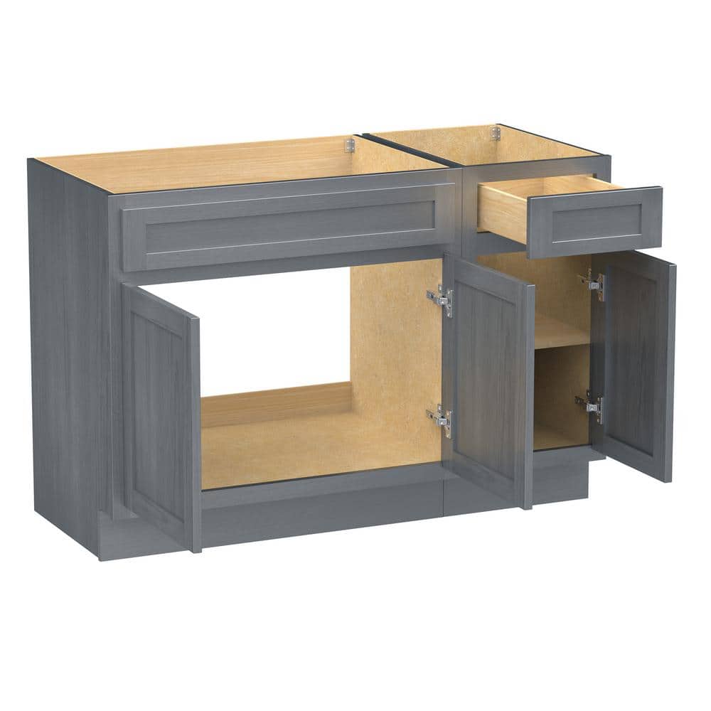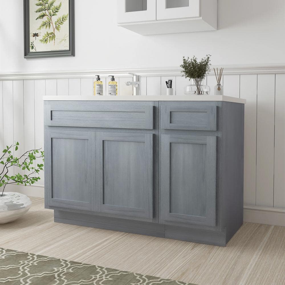 The Vanity Art 51" Bath Vanity Cabinet without Top combines sleek design with practical storage solutions, making it ideal for enhancing any modern bathroom. Constructed from durable oak and plywood, it offers elegance and longevity, perfect for professional contractors and discerning DIY enthusiasts.