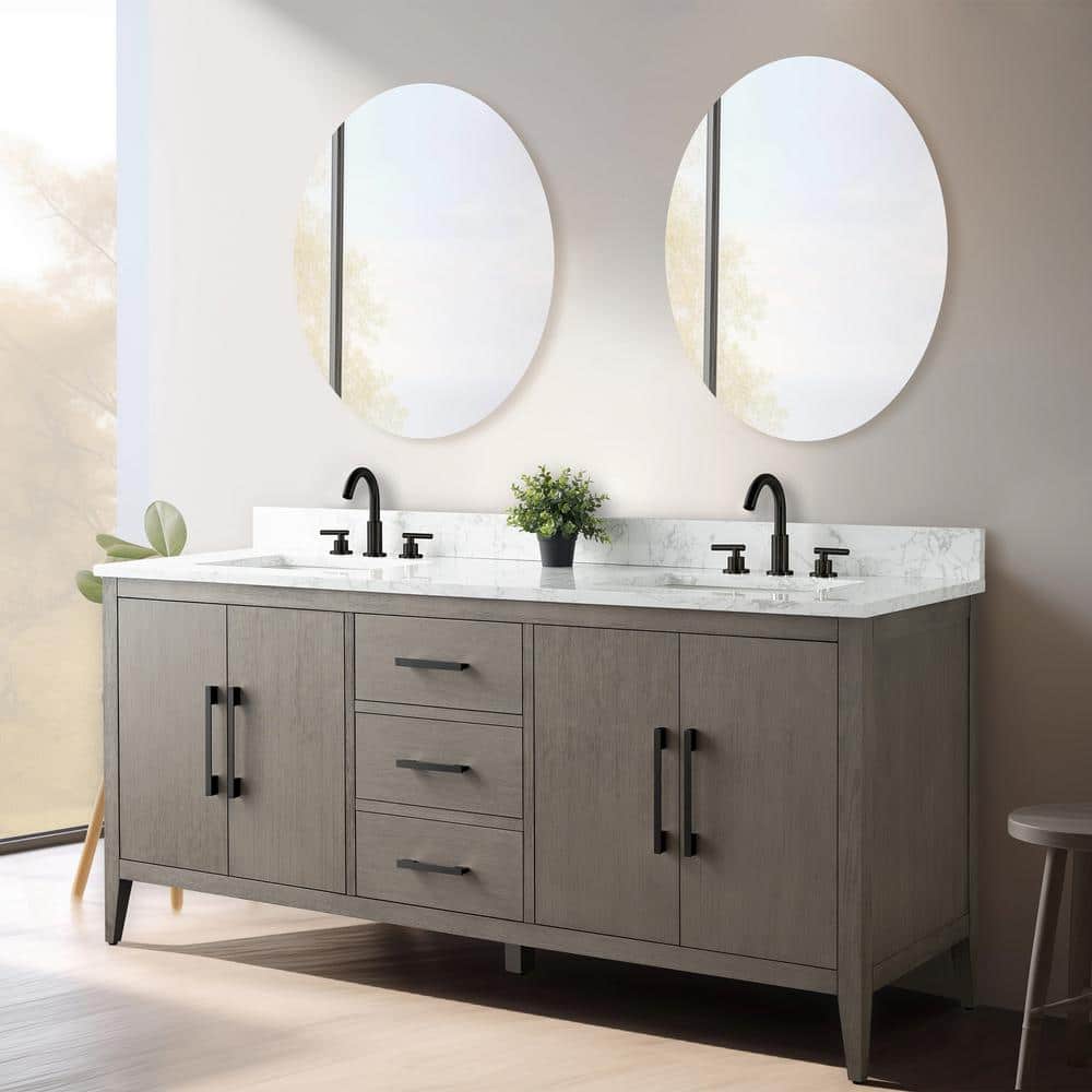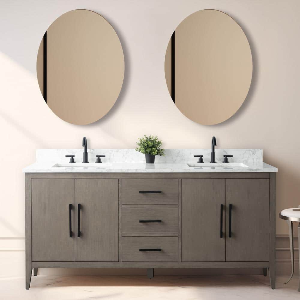 Upgrade your bathroom with the Vanity Art Double Sink Bathroom Vanity in Driftwood Gray, featuring a luxurious white engineered marble top. With its elegant design, ample storage, and durable construction, this vanity offers a perfect blend of style and functionality for any home improvement project.