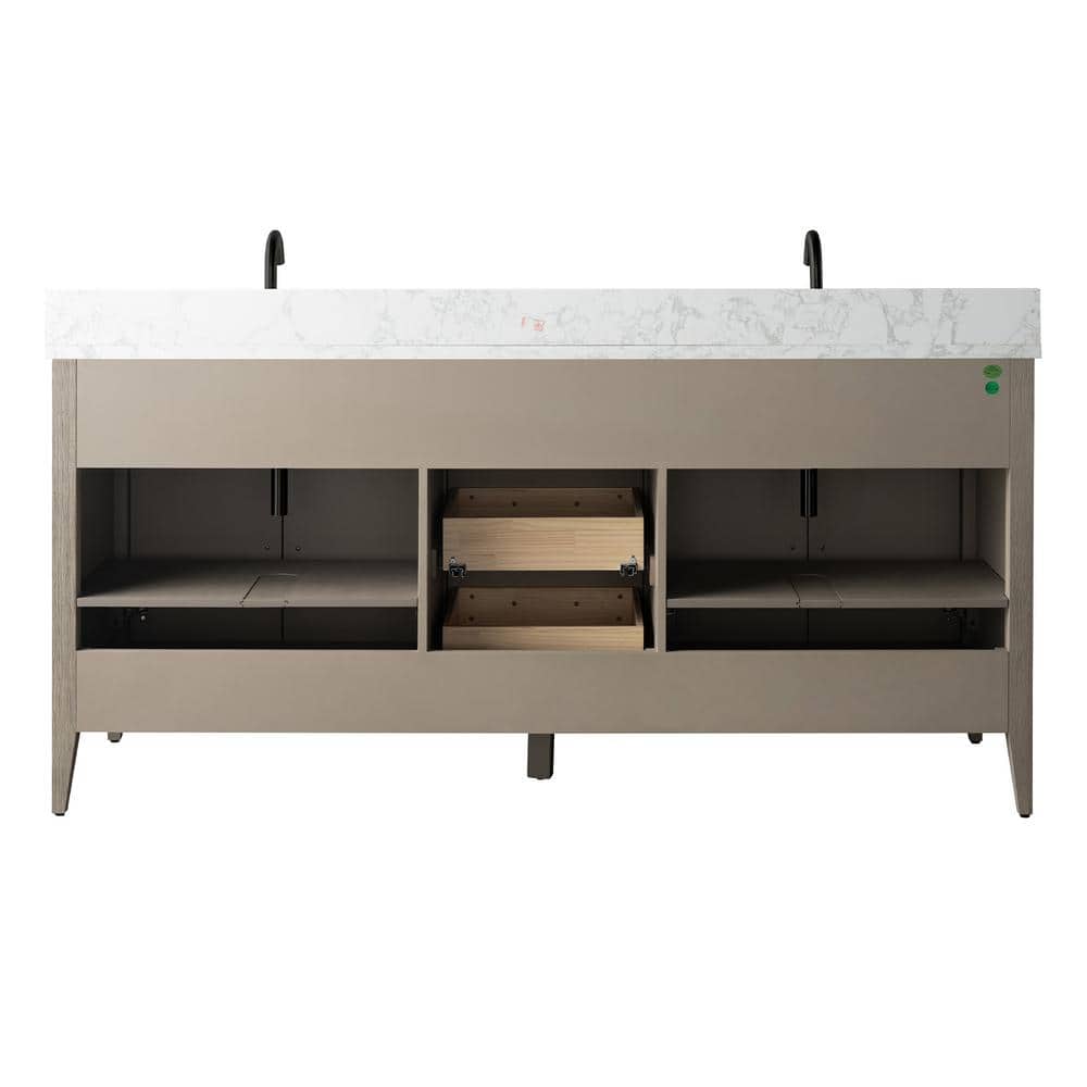 Vanity Art 72 in. W. x 22 in. D x 34 in. H Double Sink Bathroom Vanity Cabinet Driftwood Gray with Engineered Marble Top in White