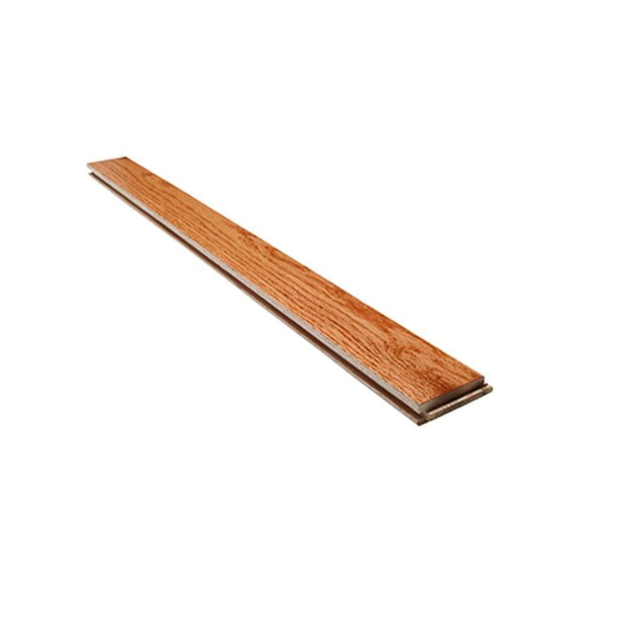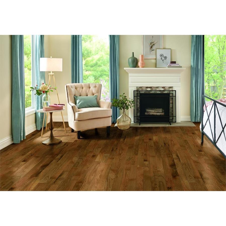 Bruce Hardwood, with over a century of authentic craftsmanship for long lasting, premier quality High-gloss, solid domestic oak hardwood strip Tough urethane finish that protects against traffic and wear, soil and stains Proudly made in the USA with domestically sourced lumber, a naturally sustainable resource Durable, solid wood that can be refinished up to three times Appropriate grades for installation are above grade or on grade Nail down installation for a more permanent installation on wood subfloors Janka wood hardness rating/resistance to denting is 1360 5-Year residential finish warranty