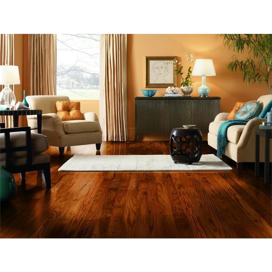 High-gloss, solid domestic oak hardwood Natural grain and character Superior urethane finish with aluminum oxide that resists everyday traffic and wear, soil, stains and spills Proudly made in the USA with domestically sourced lumber, a naturally sustainable resource Appropriate grades for installation are above grade or on grade Nail down installation for a more permanent installation on wood subfloors Janka wood hardness rating/resistance to denting is 1290