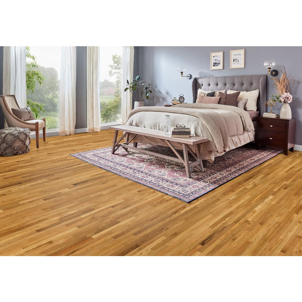 Transform your space with the Bruce American Home Butterscotch Oak Flooring. This smooth solid hardwood flooring offers the warm, rich look of oak with a classic 2-1/4 inch width for timeless appeal. With its durable DuraLuster finish and robust grain, this flooring not only enhances aesthetic charm but also provides resilience to everyday wear and tear.