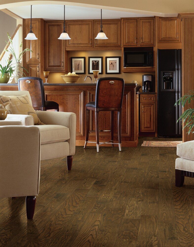 Bruce Wood Trail Oak Handscraped Solid Hardwood Flooring adds rustic elegance and long-lasting durability to your spaces. Crafted from American-grown solid red oak with a handscraped finish, this flooring offers both beauty and function, ready to enhance any home or office space.