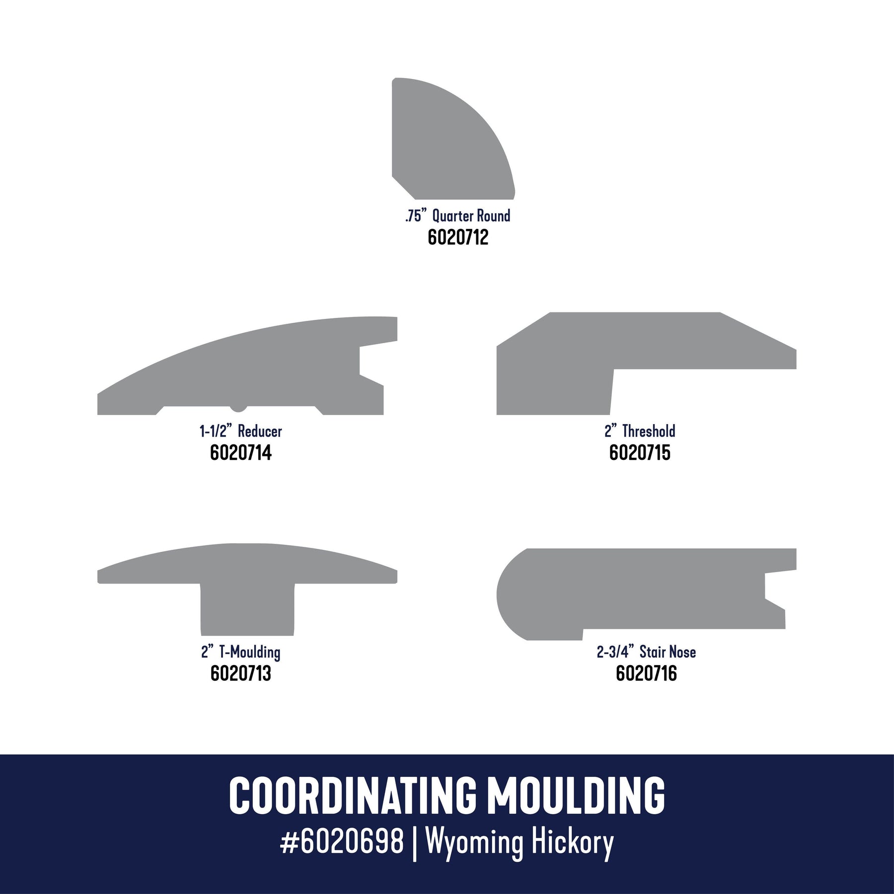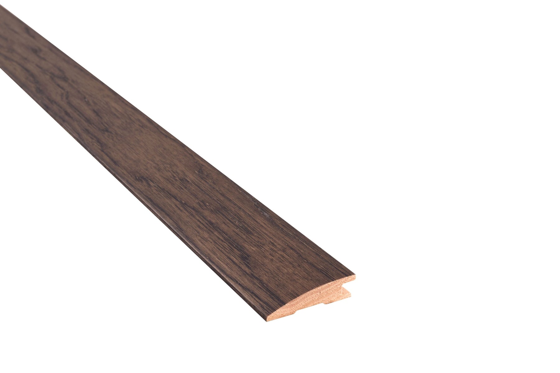 Create seamless floors with the Bruce Barnwood Living Wyoming Wood Reducer, designed to elegantly connect flooring surfaces of different heights. Made from high-quality hickory, this prefinished wood accessory ensures both durability and a refined aesthetic with its rich brown finish.