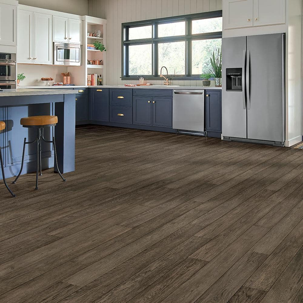 Elevate any space with the rich taupe undertones of Bruce Hydropel Hickory flooring, a statement of refined taste and resilience. The wire-brushed texture not only adds visual interest but also invites touch, offering a tactile experience that's both soothing and sophisticated. Whether styled under a chic sectional or complementing a minimalist kitchen, this flooring eloquently balances luxury with practicality, ensuring that elegance is never sacrificed for functionality.