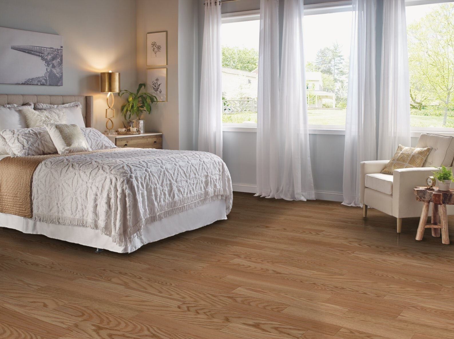 Transform your home with the enduring beauty of natural red oak; order your Bruce Engineered Hardwood Flooring today and start your renovation journey.