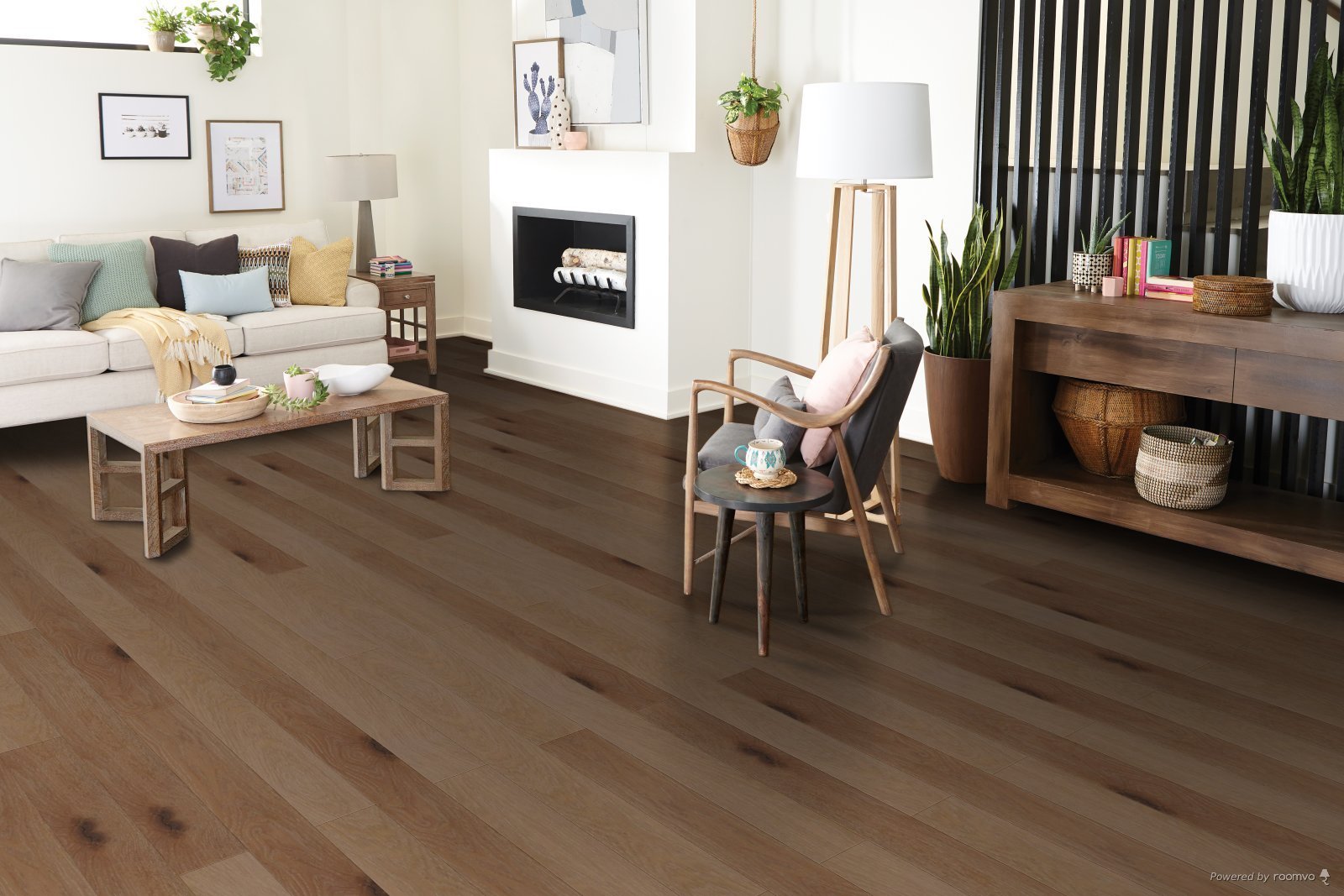 Bruce Nature of Wood Plus Engineered Hardwood Flooring captures the elegant essence of white oak with its soft brown tone and wire-brushed texture. This flooring offers an upscale look with its 6-1/2-inch-wide planks and a durable, low gloss finish, enhancing any room's open and airy feel while resisting everyday scratches.
