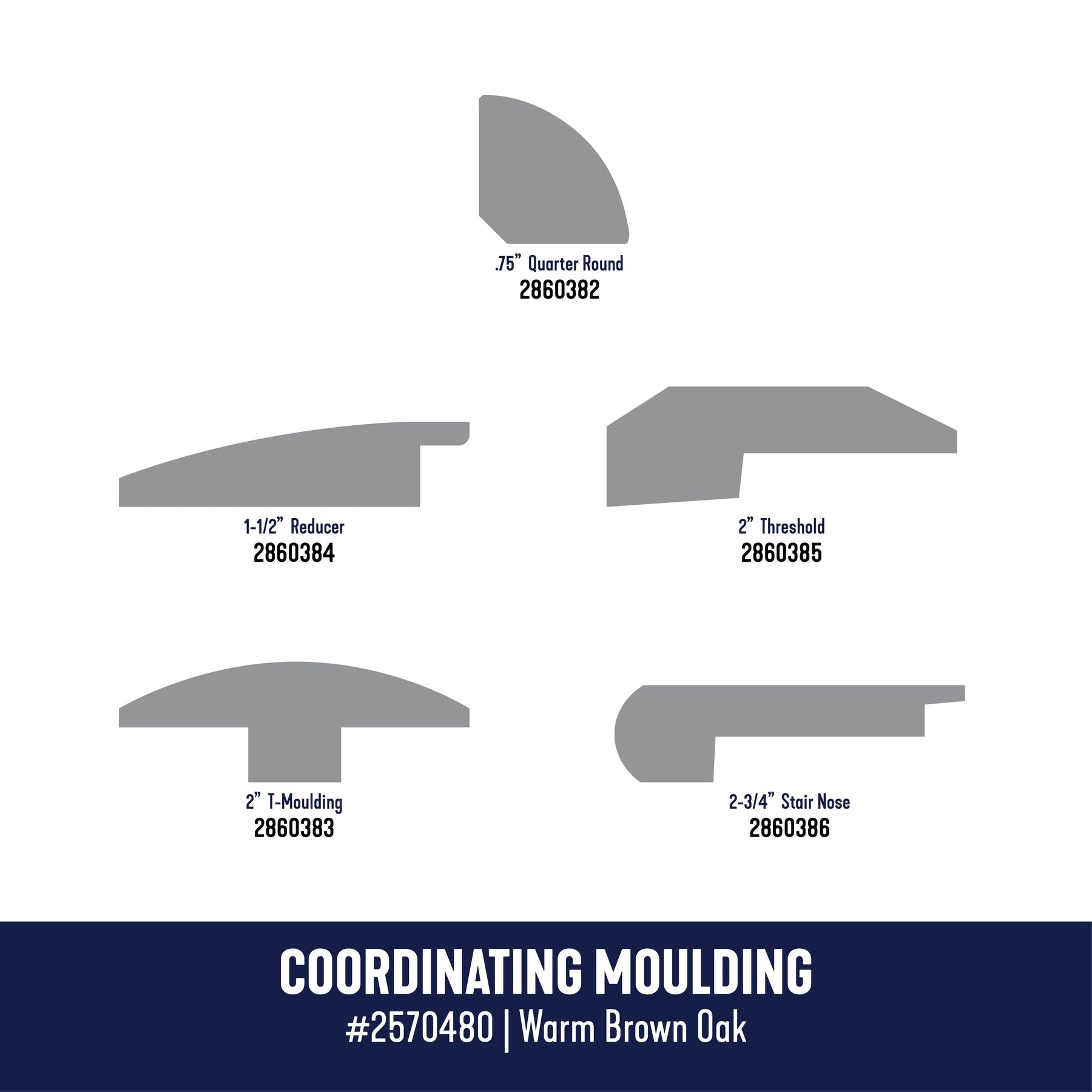 Embrace the beauty of Oak with this Bruce Warm Brown Solid Wood Quarter Round, designed to flawlessly integrate with your hardwood flooring. Known for its rich hue and smooth, prefinished profile, this moulding adds a polished finish to any room by covering gaps between floors and baseboards.