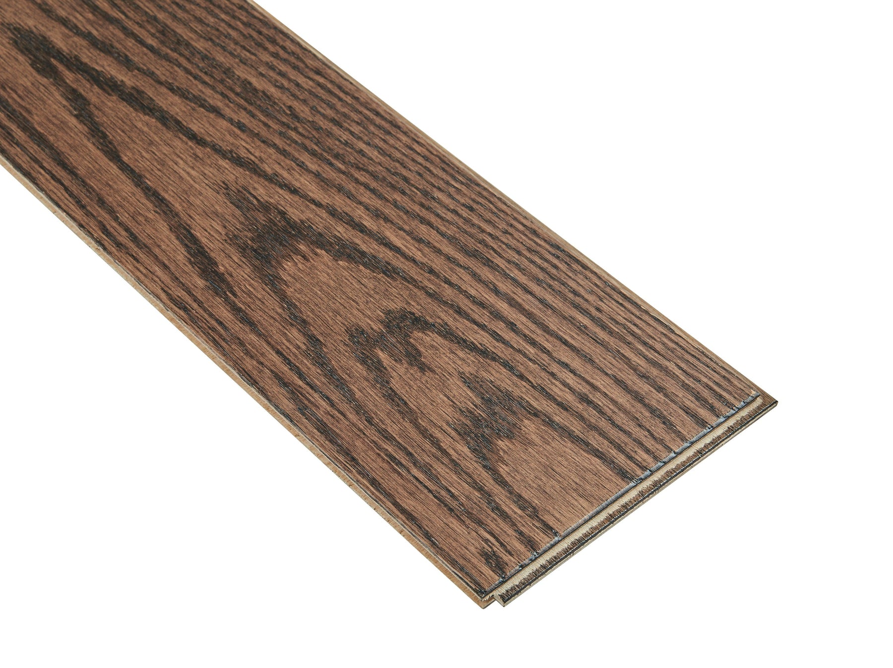 Experience timeless elegance with the Bruce Deer Valley White Oak Engineered Hardwood Flooring. Its dark brown tones and wirebrushed texture combined with a low gloss finish bring sophistication and durability to any space. This sample offers a glimpse into the luxury that a full installation can provide.