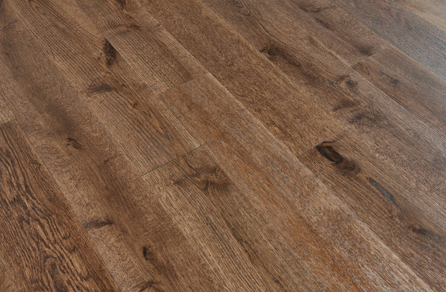 The Deer Valley White Oak flooring by Bruce is a harmonious marriage of rustic allure and modern sophistication. Its rich, dark brown hue and elegantly wirebrushed texture transform any room into a sanctuary of style and comfort. Consider pairing it with lush greenery and minimalist furnishings to let the floor's warm character shine. This flooring is not just a surface underfoot; it's a statement of refined taste and enduring luxury.