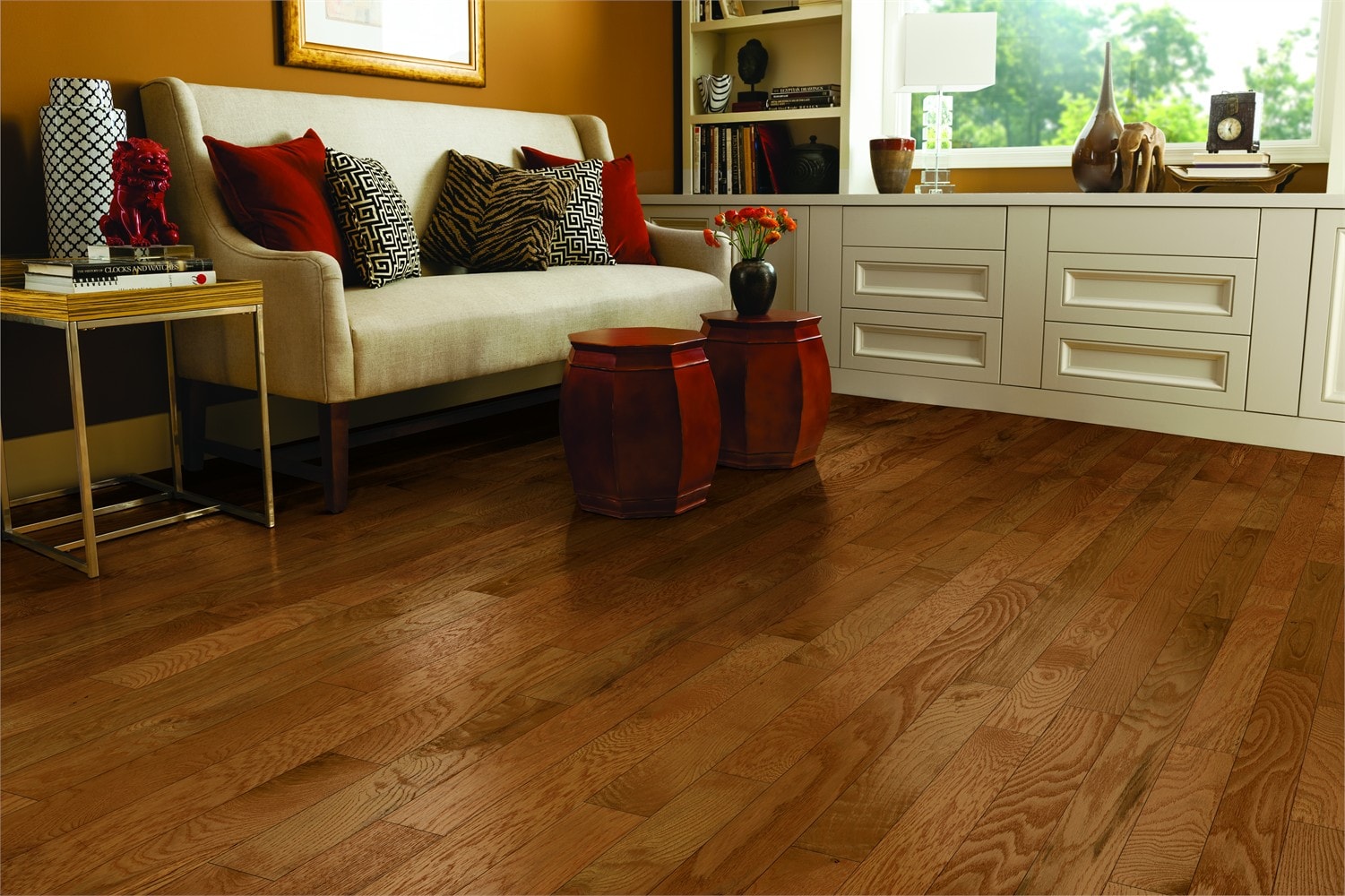 Discover the timeless beauty of Bruce Frisco Fawn Oak Hardwood Flooring. Known for its robust grain, this solid oak flooring combines natural elegance with exceptional durability. Perfectly crafted in the USA, it promises both aesthetic appeal and long-lasting performance.