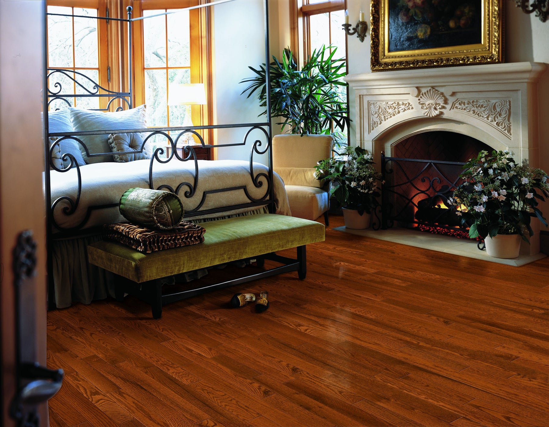 Discover timeless elegance with Bruce Frisco Gunstock Oak Solid Hardwood Flooring. This prefinished, medium-gloss oak flooring offers a traditional look that complements any interior style while providing unmatched durability and scratch resistance with a Janka hardness rating of 1290.