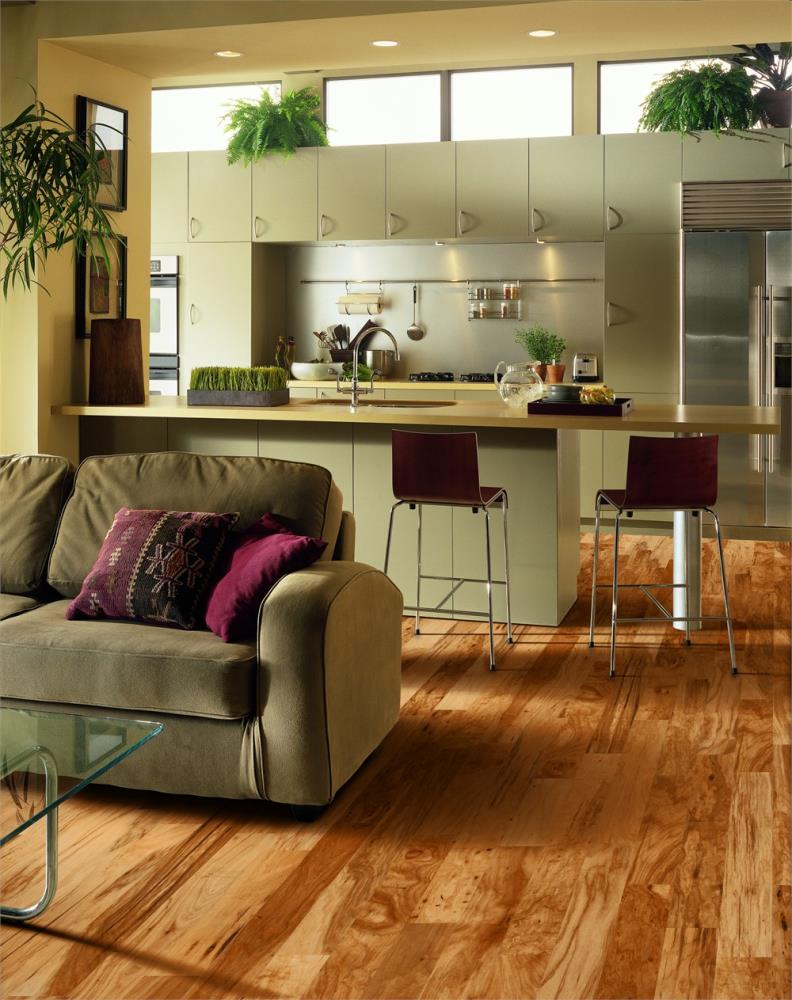 Bruce Natural Woods Hickory flooring is more than just a surface; it's a statement of sophistication. The smooth, traditional finish glows with warmth, creating an inviting atmosphere. Use this flooring to anchor your design choices, pairing it with contemporary or vintage accents to enhance its subdued elegance. An essential for those who appreciate both function and style, it invites a lifetime of luxury living.