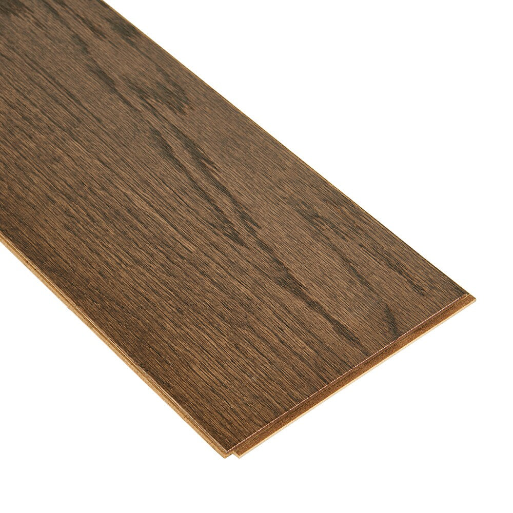 Discover how the enchanting grain of medium brown oak breathes warmth and richness into any space with Bruce's engineered hardwood flooring. The smooth, traditional texture offers a touch of sophistication that is both modern and timeless. Style it with plush rugs and sleek furniture to create a living area that's both inviting and refined. This flooring is not just a design choice—it's an essential element for elevated living.