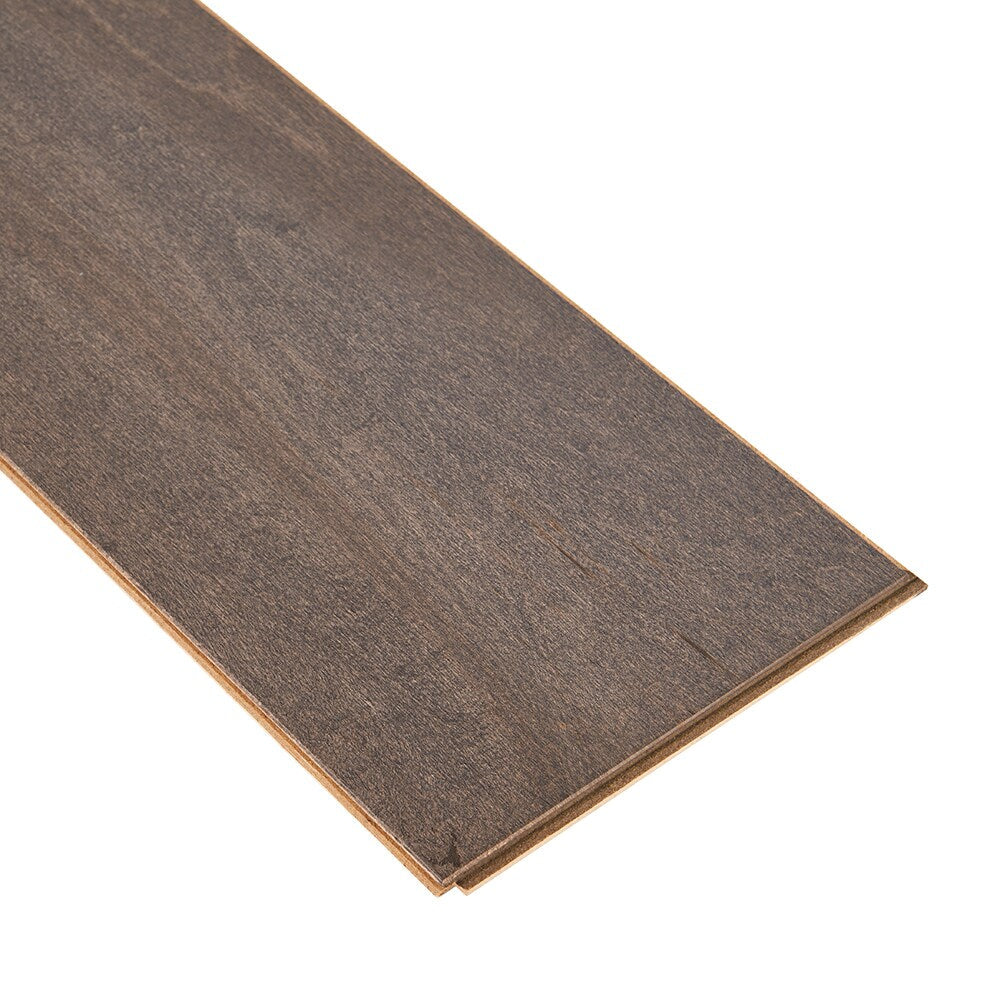 Elevate your interior with Bruce Nature of Wood Engineered Maple Hardwood Flooring Sample, featuring a rich medium gray finish that highlights the natural rustic character of each plank. Made in the USA, this flooring combines aesthetic elegance with the durability of engineered construction, making it a perfect choice for residential spaces.