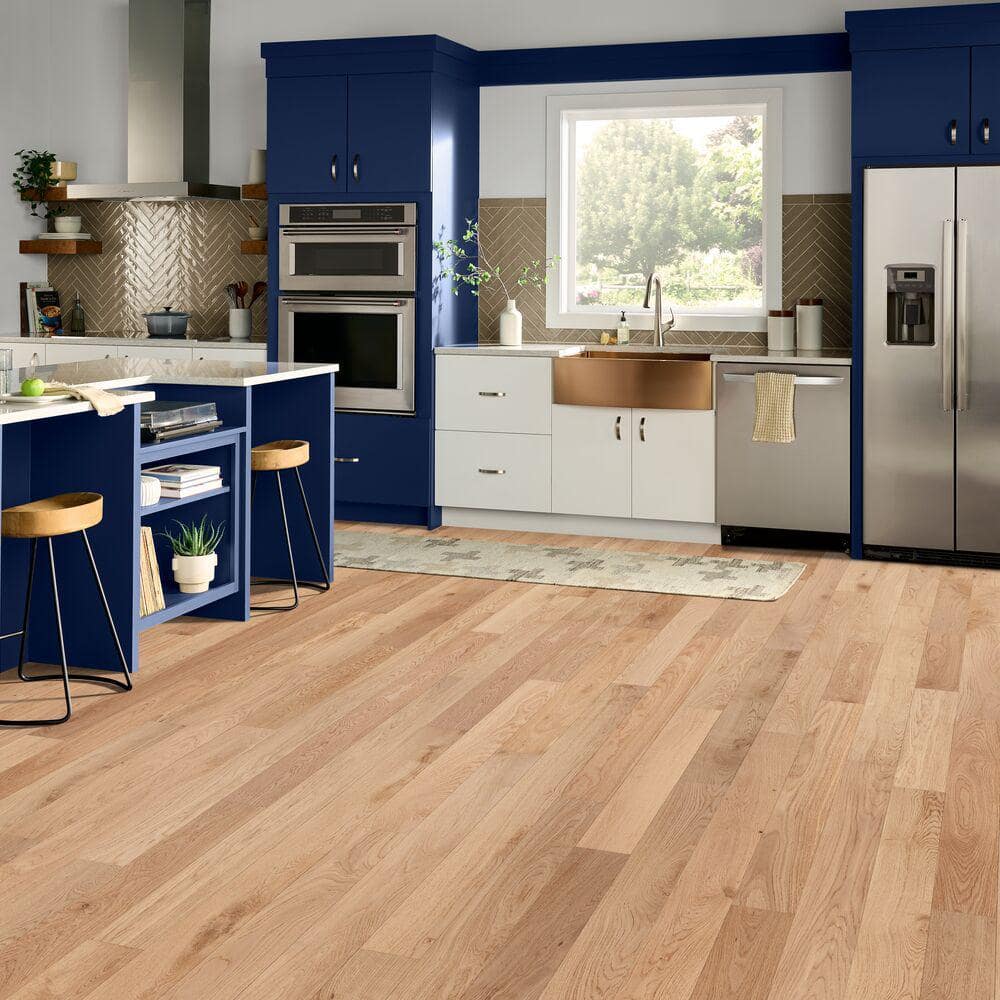 Step into sophistication with Bruce's Time Honored Aged White Oak flooring. Each plank tells a story, with wire-brushed textures that capture the gaze and invite admiration. Pair this flooring with soft, neutral furnishings to create an oasis of calm that eloquently speaks of luxury. Essential for redefining any room, it's more than a foundation—it's the hallmark of a beautifully curated home.