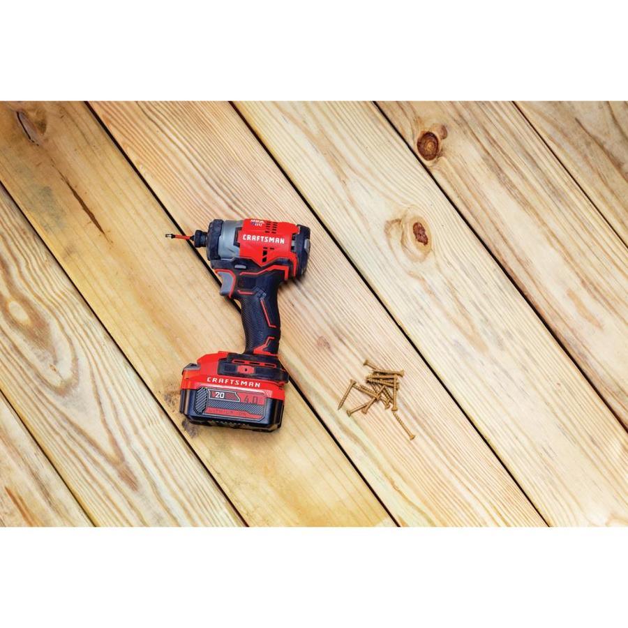 ** Fastening 3-in deck screws into pressure treated 4-in x 4-in with 2.0Ah battery versus CMCF800 with 1.5Ah battery; *20V MAX battery, maximum initial battery voltage (measured without a workload) is 20 volts, nominal voltage is 18