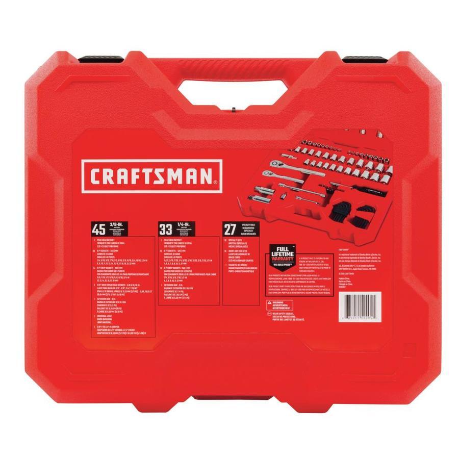 CORROSION RESISTANCE: Full Polish Chrome Finish MINIMAL ARC SWING: 72-tooth Ratchets in 2 drive sizes INCREASED TORQUE: 6 Point Socket with fastener ALLOWS FOR EASY TOOL STORAGE: Durable Blow Molded Case QUICK SIZE IDENTIFICATION: Large Markings Meets or Exceeds ASME Specifications Common applications include automotive mechanical and home repair CRAFTSMAN Full Lifetime Warranty