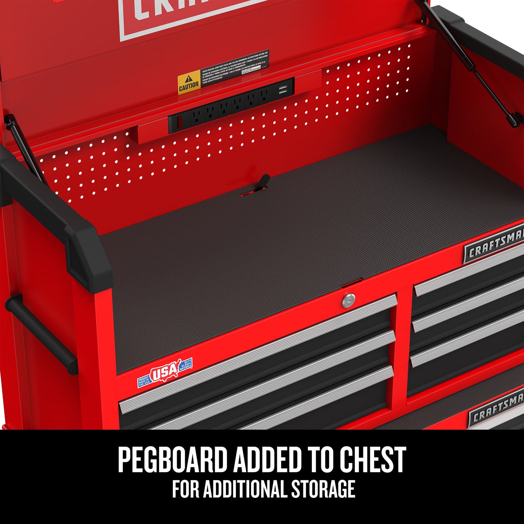 - Customizable Storage: Pegboard holes along the back wall allow for personalized organization.