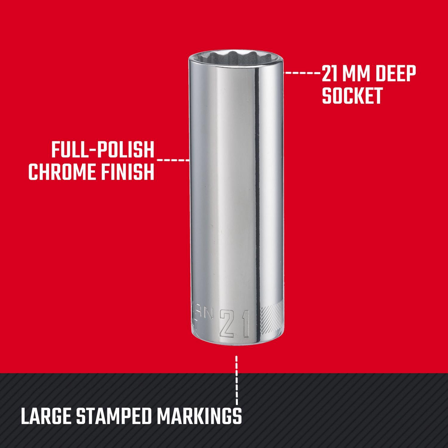 Craftsman 21 mm Metric 12 Point Deep Socket, 1/2 in. Drive