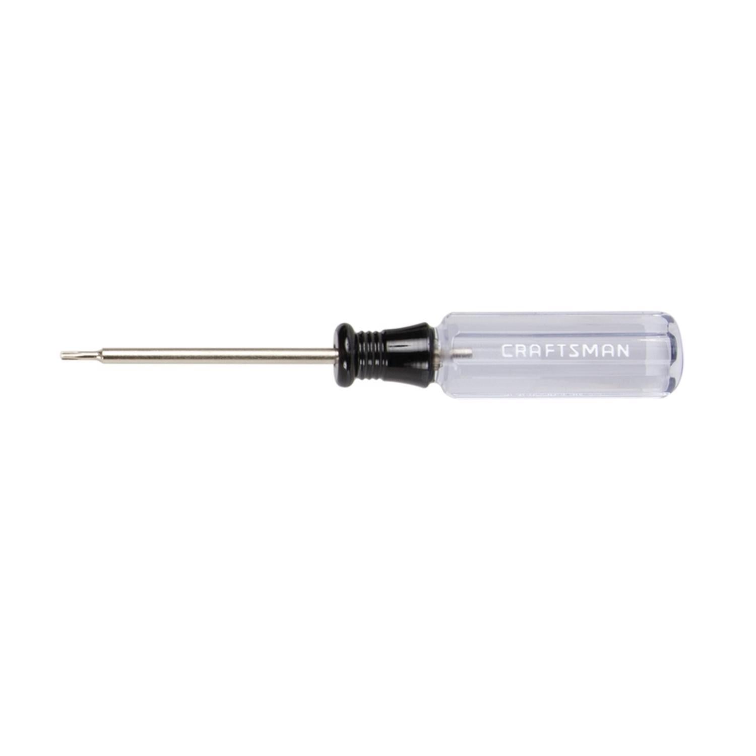 The Craftsman T6 Torx Screwdriver is a testament to functional elegance, blending durability with a sleek design. Its clear acetate handle adds a touch of modernity, while the heat-treated steel blade ensures reliability. Perfect for detailed tasks, this tool is a must-have for any well-curated toolbox, embodying both style and substance.