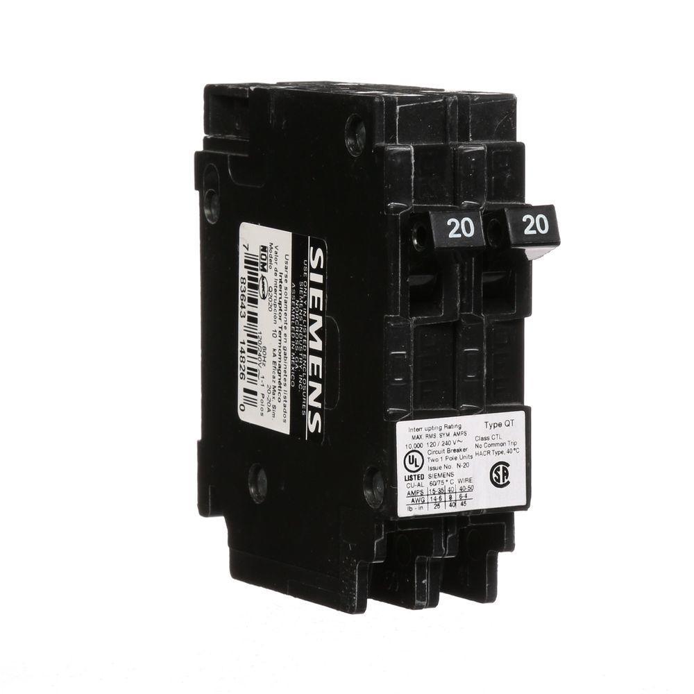 • Twin single pole, 20 Amp, 120-Volt type QT interchangeable circuit breaker