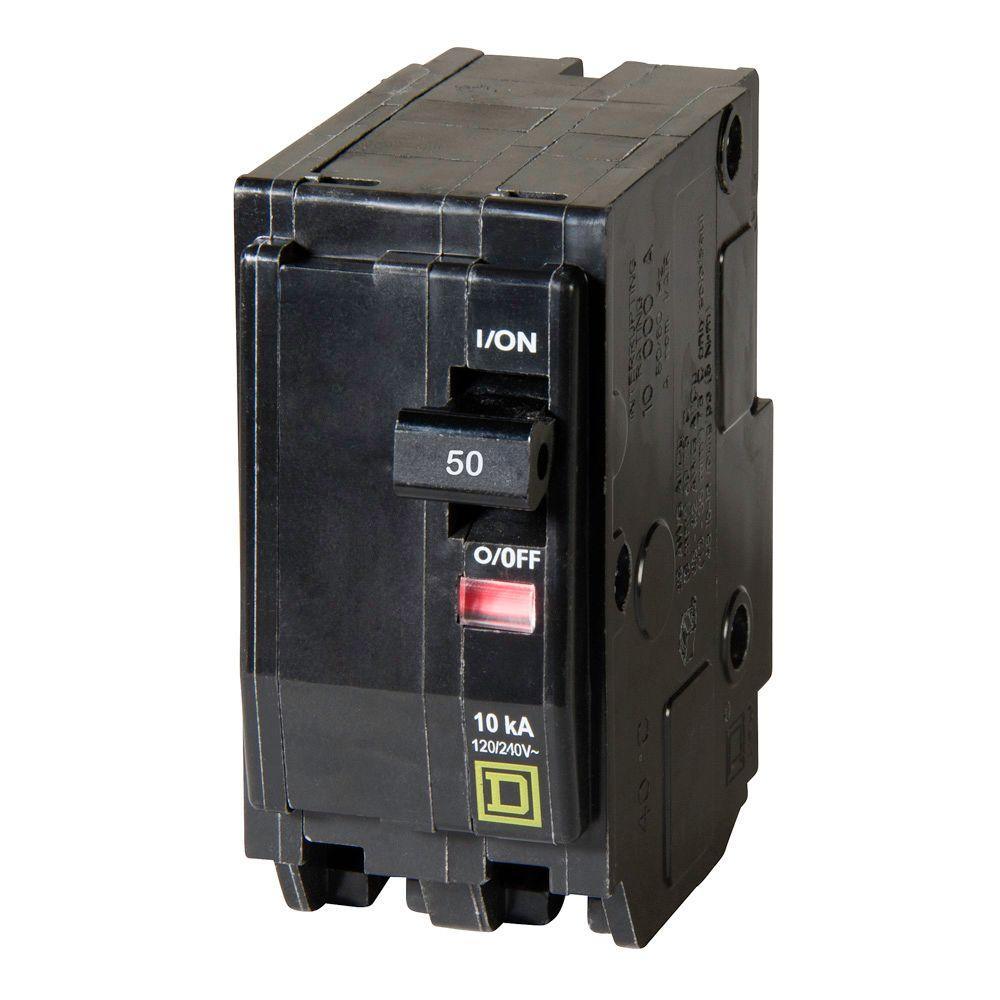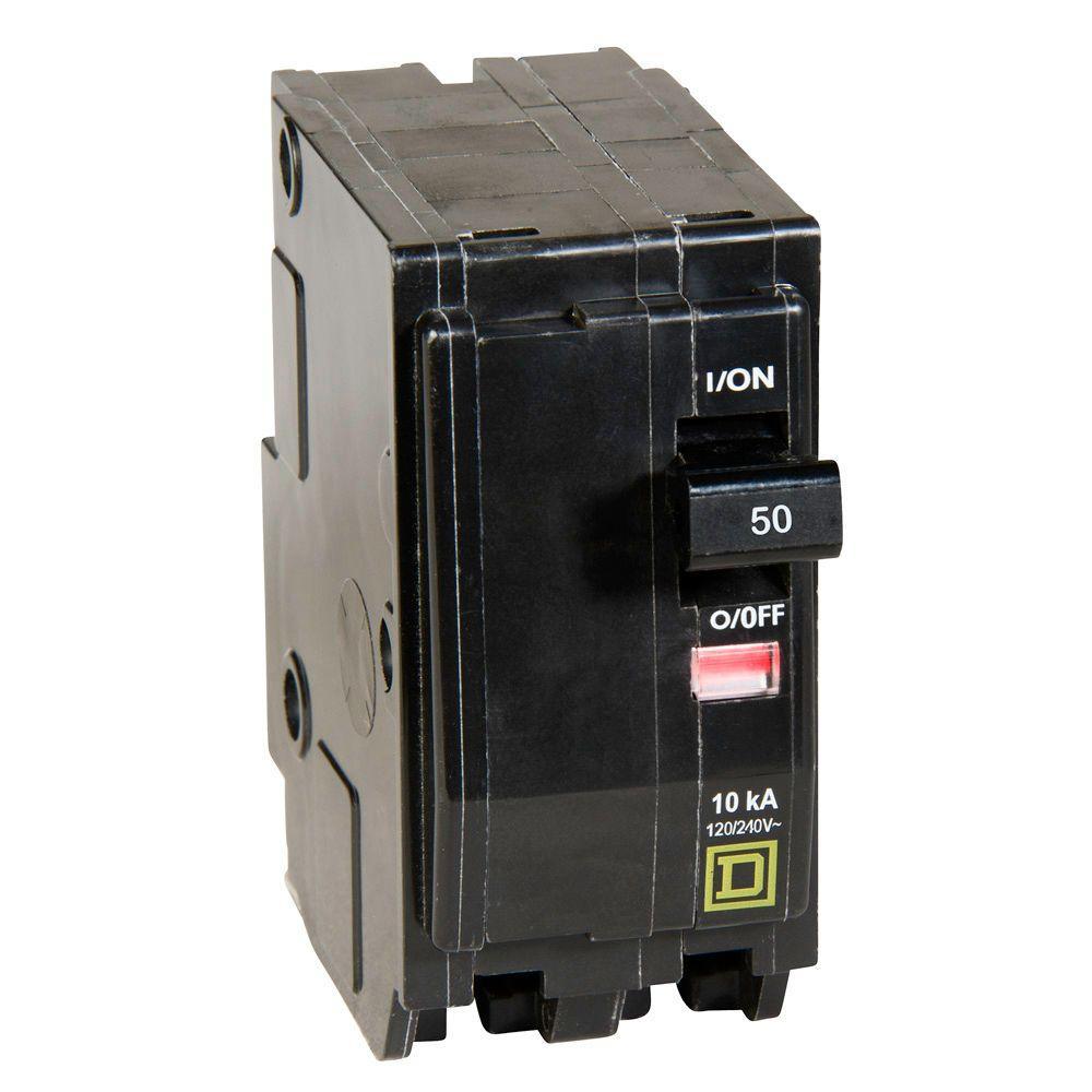 The Square D by Schneider Electric QO 50 Amp Two-Pole Circuit Breaker is intended for overload and short-circuit protection of your electrical system. The ANSI-certified and UL-listed unit is rated for 120/240 VAC and 10,000 AIR. All QO circuit breakers are equipped with the exclusive Visi-Trip indicator. When a QO Visi-Trip circuit breaker trips, the handle snaps to a midpoint position between in OFF and in ON and a highly visible, red indicator easily identifies the tripped breaker. This enables you to easily distinguish which breaker has tripped in a load center that may contain up to 42 different circuit breakers. QO circuit breakers have features no other manufacturer can offer. They come in many different sizes and can meet the needs of virtually every function in your home or business. These types of quality, industry exclusive products keep the Square D brand ahead of the competition and are builders' and electrical contractors' first choice in electrical protection.