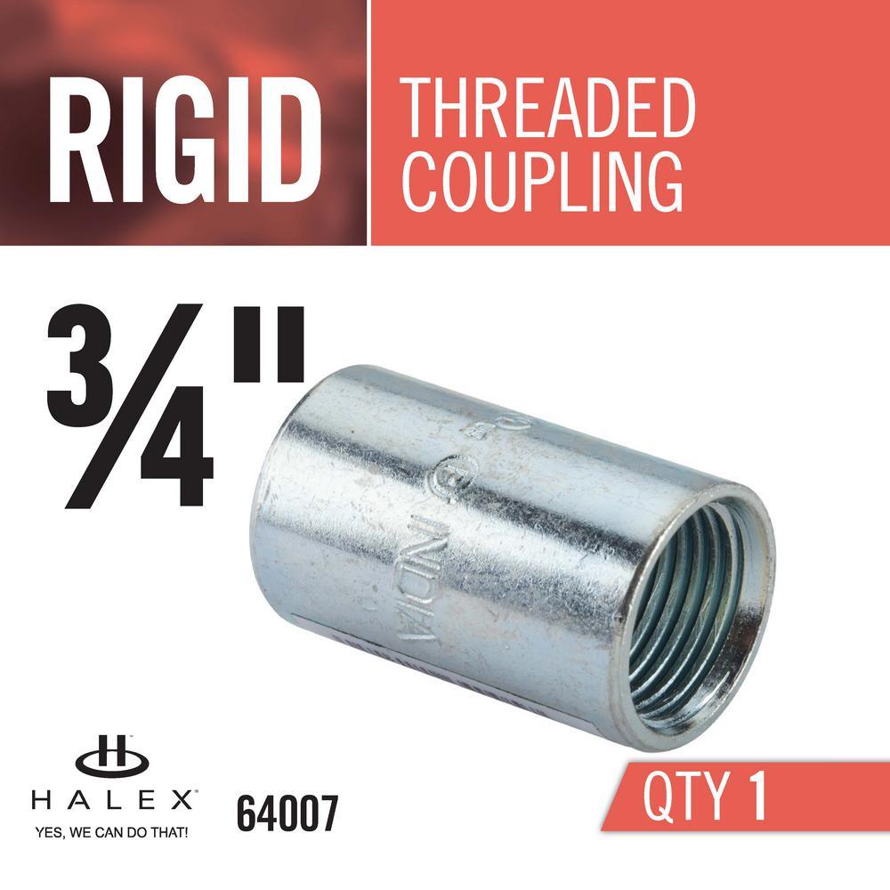 Choose the 3/4 in. Rigid Conduit Coupling when you need to connect segments of threaded rigid or intermediate metal conduit (IMC). You can use this galvanized steel coupling indoors or outdoors. This coupling meets UL and CSA requirements.