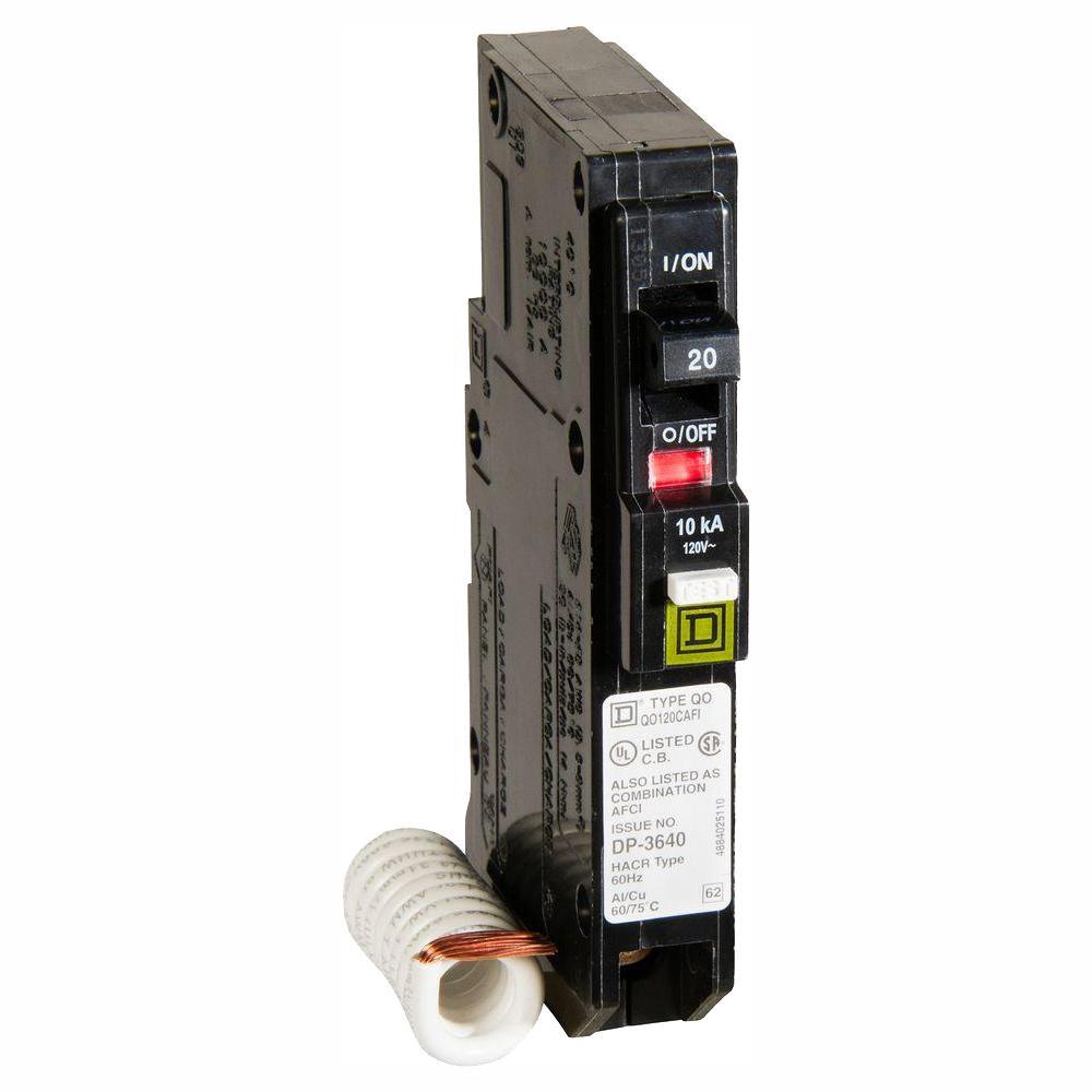 The Square D by Schneider Electric QO 20 Amp Single-Pole Combination Arc-Fault Circuit Interrupting (CAFCI) Circuit Breaker is for use to help protect your wires from arcing faults and is intended for overload and short-circuits protection of your electrical system. Now standard in all Square D brand CAFCI circuit breakers, Time-Saver Diagnostics provide advanced trip indication technology, helping identify the type of fault that has occurred faster. Time-Saver Diagnostics helps take away the guess work and provides diagnostic assistance by identifying the type of fault that last occurred. It saves money by reducing troubleshooting time, simple to use, accurate and reliable. On top of that, all QO circuit breakers are equipped with the exclusive Visit-Trip indicator. When a QO Visit-Trip circuit breaker trips, the handle snaps to a midpoint position between in. OFF in. and ON in. and a highly visible, red indicator easily identifies the tripped breaker. This enables you to easily distinguish which breaker has tripped in a load center that may contain up to 42 different circuit breakers. QO circuit breakers have features no other manufacturer can offer. They come in many different sizes and can meet the needs of virtually every function in your home or business. These types of quality, industry exclusive products keep the Square D brand ahead of the competition and are builders' and electrical contractors' first choice in electrical protection.