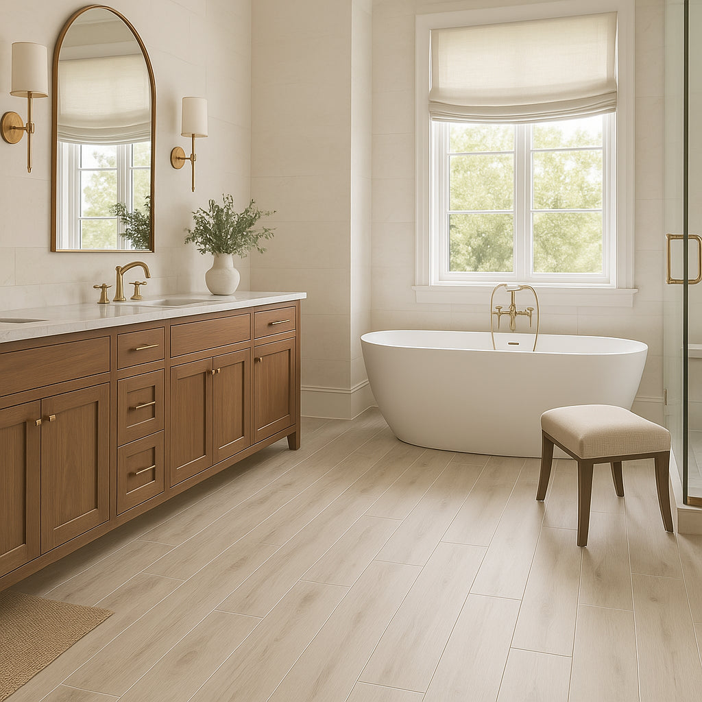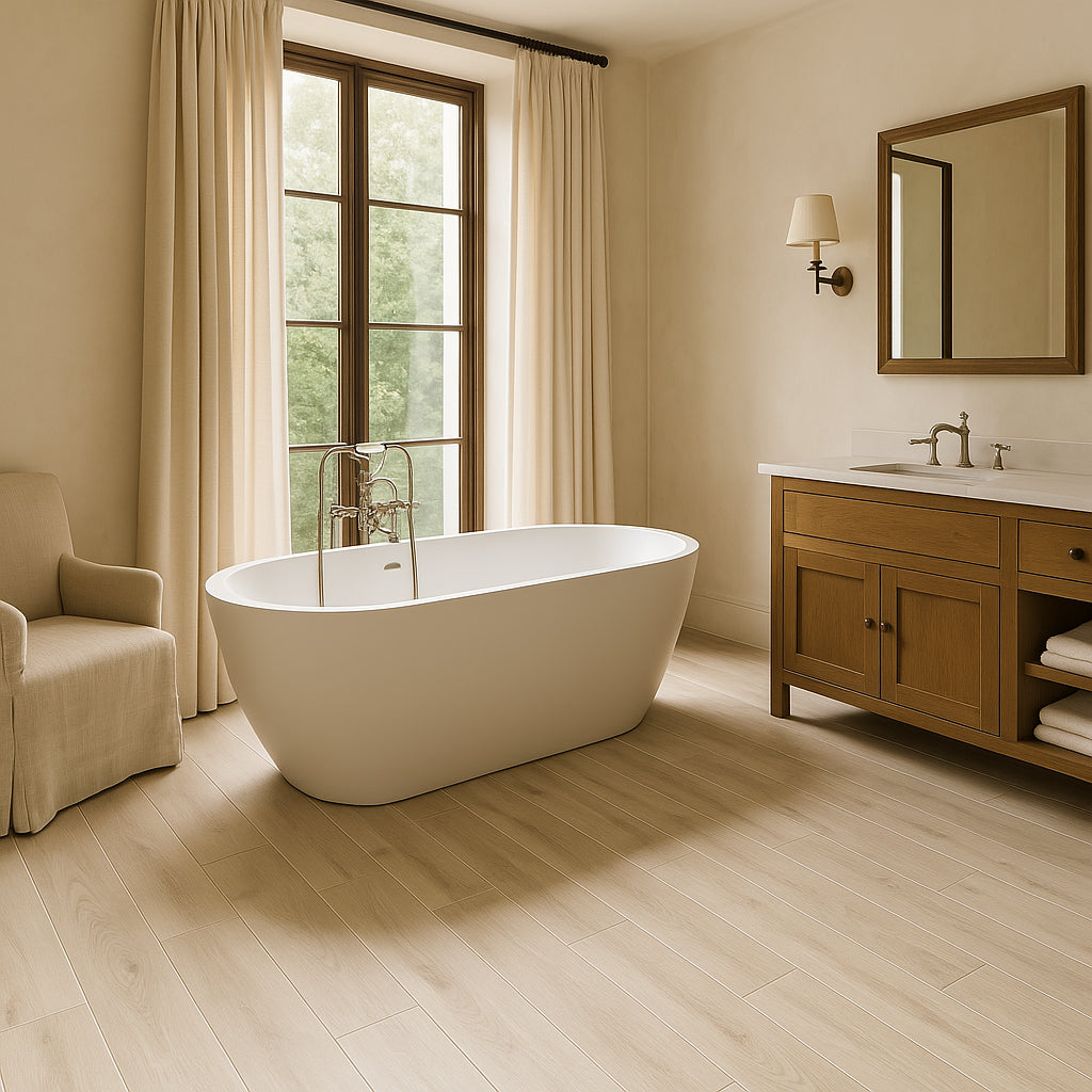 Enhance your space with the Meadow Blanco Porcelain Tile, combining the timeless look of wood with the durability of porcelain.