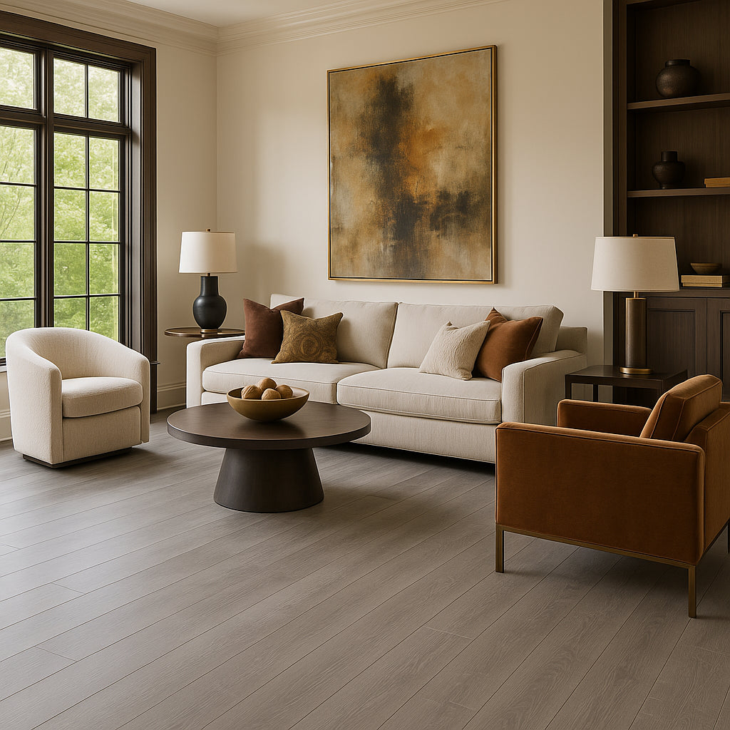 The Alton Carrington Vinyl Plank Flooring transforms any room into a haven of sophistication with its authentic wood aesthetic and rich gray tones. Its embossed texture and wide planks create a luxurious ambiance, perfect for modern or rustic interiors. Pair it with minimalist furniture to highlight its natural beauty, or use it as a foundation for bold decor accents. This flooring is not just a design choice—it's a statement of refined living.