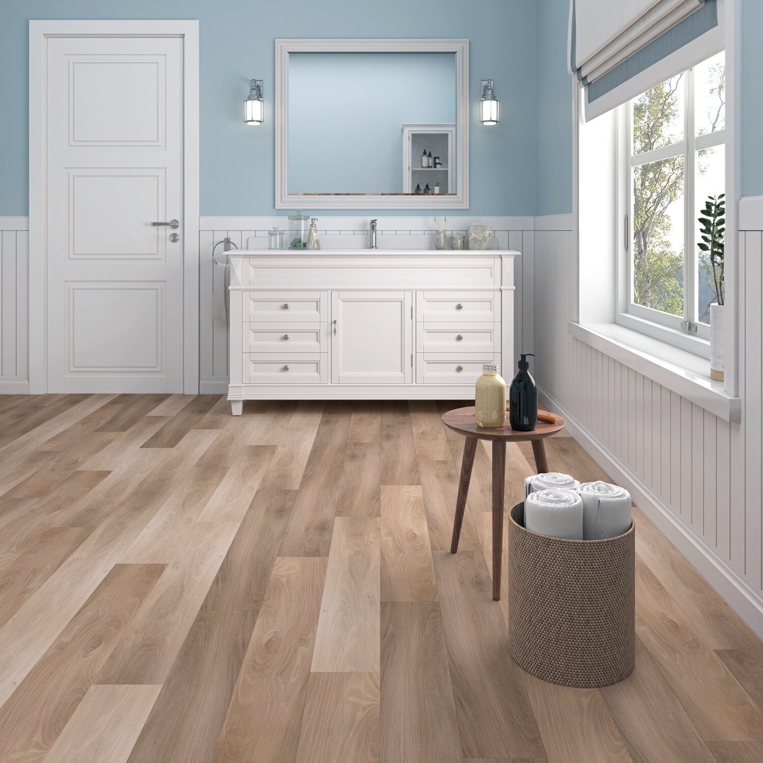 Experience the luxurious transformation with Lucida USA's BaseCore Honey Brown Vinyl Planks. These exquisite planks mimic the allure of natural beech wood, offering a realistic texture that's both elegant and versatile. Picture them seamlessly installed in your kitchen or bathroom, inviting warmth and depth to any room. This vinyl flooring is not only a statement in style but a testament to effortless luxury living, ideal for those who value beauty and simplicity.