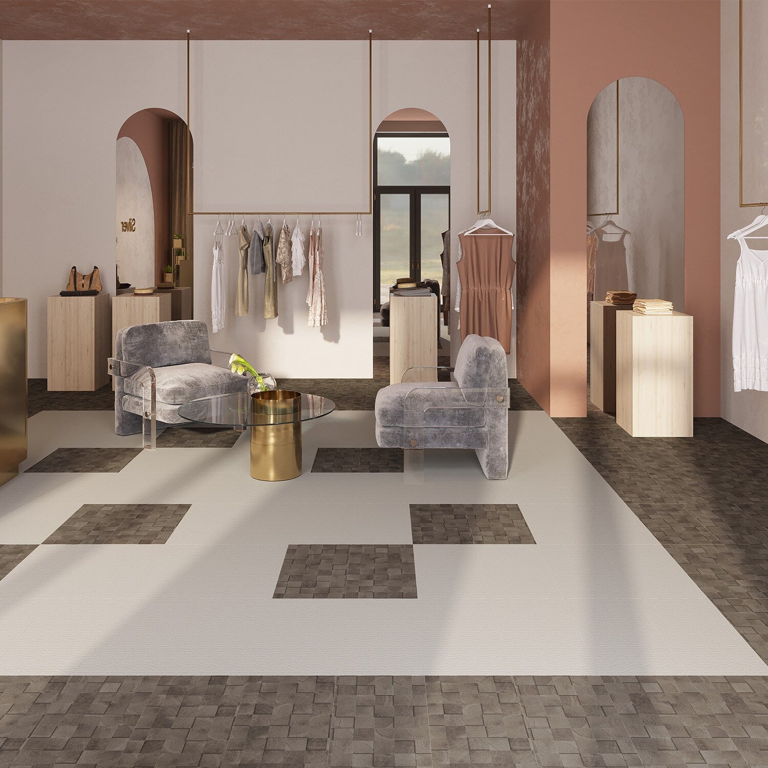 Elevate your project with the timeless beauty and durability of Lucida's Faded Block Brown Vinyl Tile—order today and redefine your space.