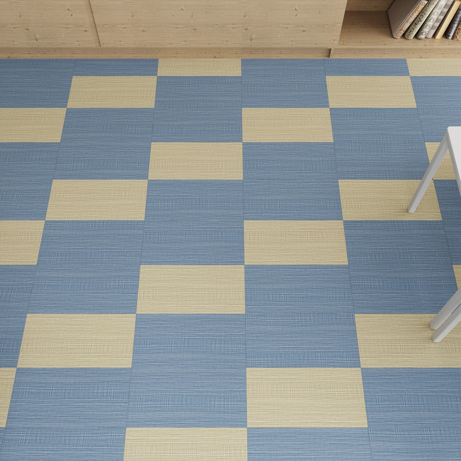 Transform your room into a masterpiece with the Lucida USA Harbor Weave Vinyl Tiles. The intricate blue pattern resembles a modern piece of art underfoot, inviting comfort and visual allure. Pair these tiles with minimalist white cabinetry and chrome fixtures for a bright, chic ambiance. An ideal choice for those who desire luxury without sacrifice, these tiles meld function and extravagance seamlessly into any setting.