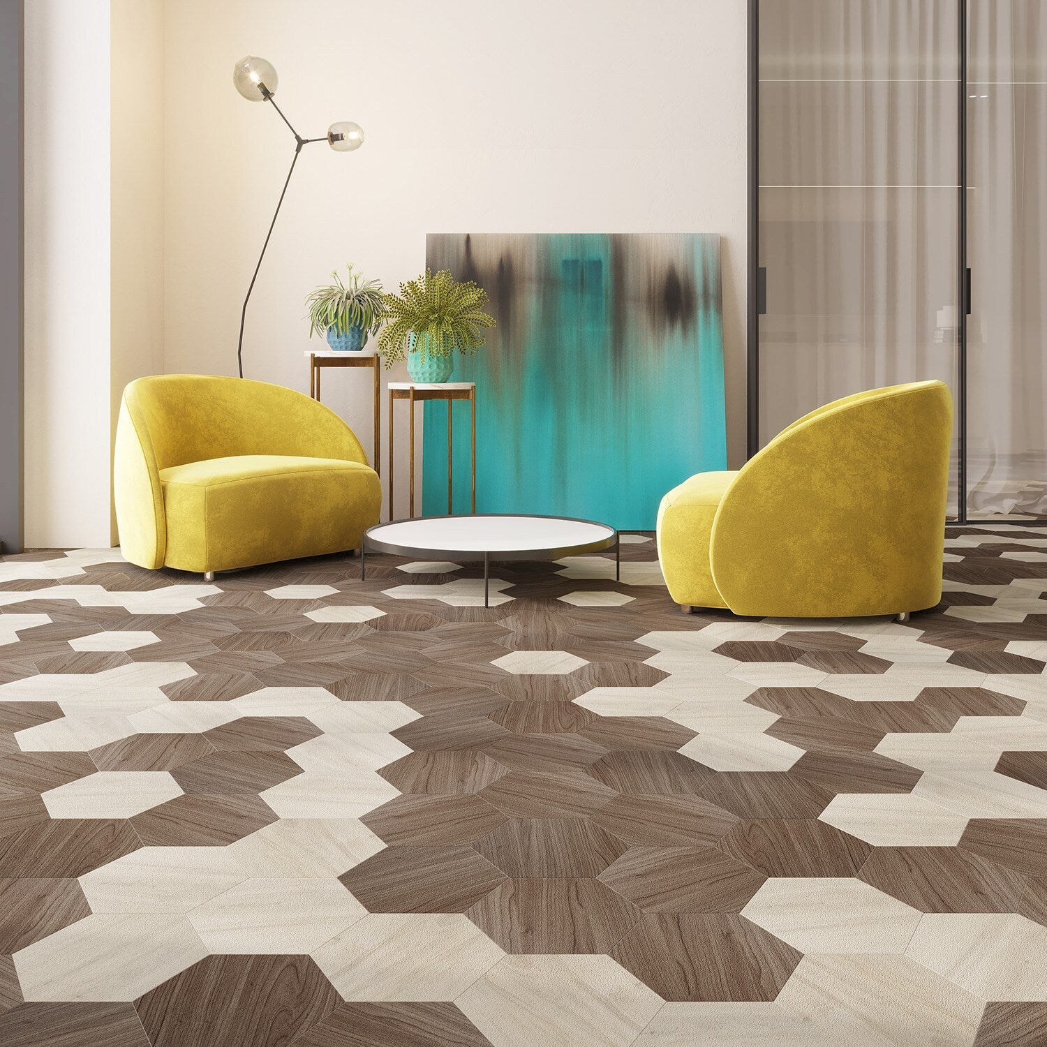 Transform your space with Lucida USA's Hickory Brown Luxury Vinyl Tile Flooring, featuring a rich wood look and 28-mil durability. These waterproof, stain-resistant tiles are perfect for both commercial and residential applications, offering a sophisticated and practical flooring solution.