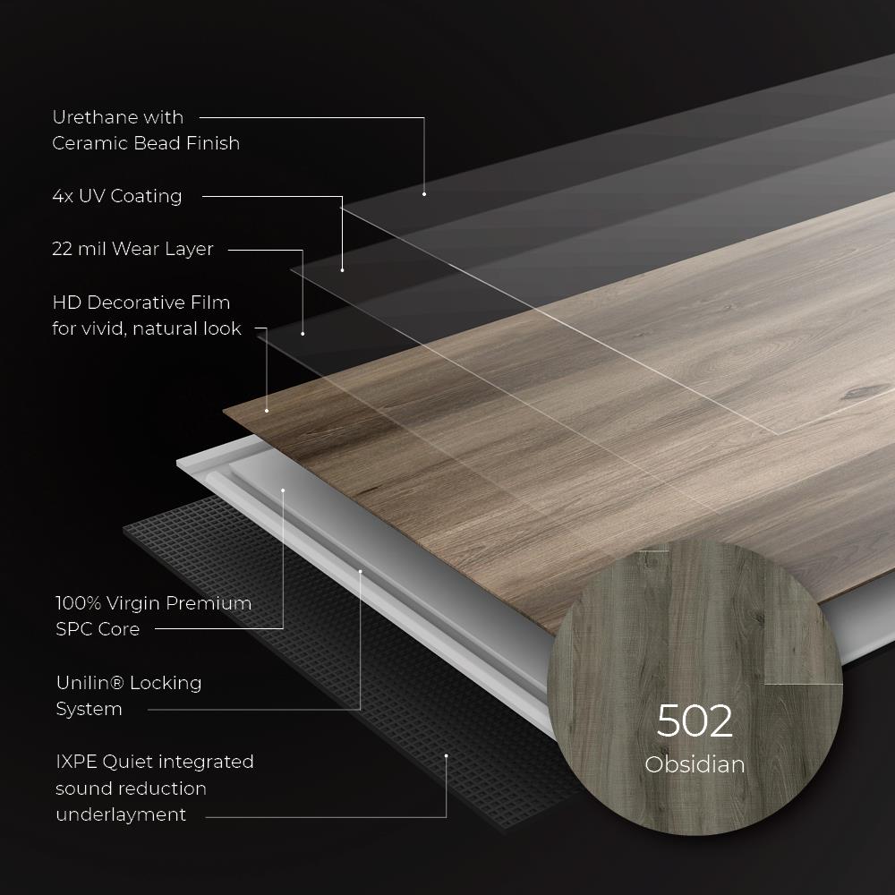 Revamp any space with Lucida USA Maxcore Obsidian Gray luxury vinyl planks. This waterproof interlocking flooring offers a rich, natural wood appearance with superior durability. Ideal for high-traffic areas, it features a simple click installation perfect for DIYers and professionals alike.