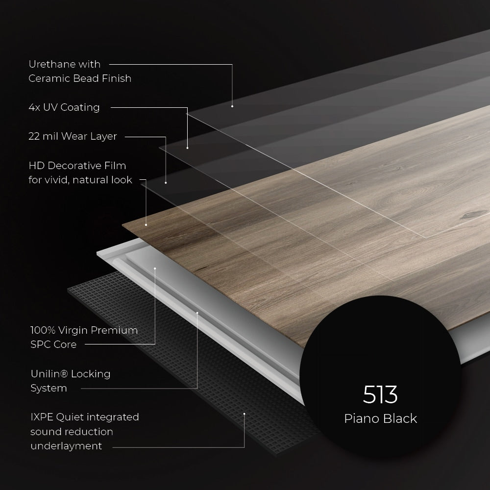 Experience the pinnacle of flooring innovation with Lucida's Maxcore Piano Black vinyl planks. With its 28-mil wear layer, this luxury flooring is designed to withstand the toughest environments while stunning with a high-definition, natural look that rivals real hardwood. Perfect for any space, the planks are 100% waterproof, easy to install, and exquisitely durable, making them ideal for professional and DIY projects alike.
